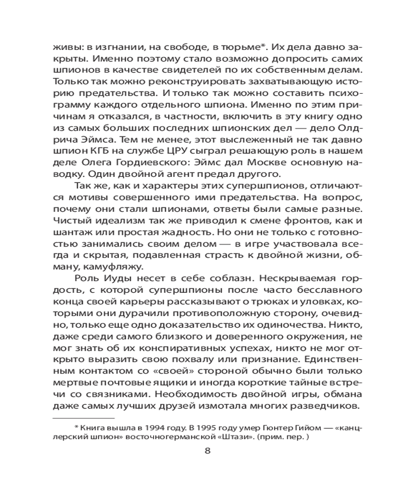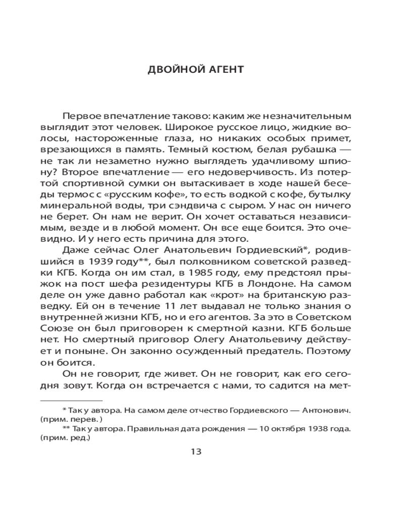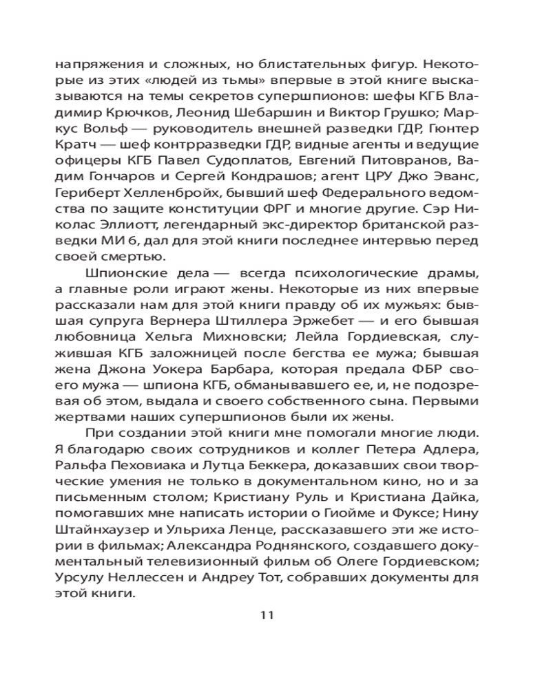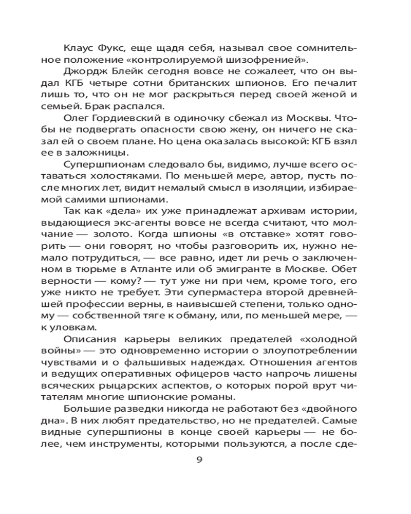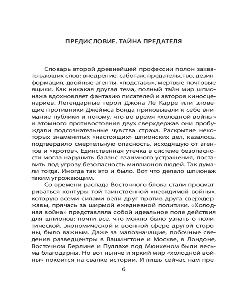 Супершпионы. Предатели тайной войныВ данный момент этот товар отсутствует в продаже. Возможно, у нас найдется аналогичный или похожий товар здесь. Серия: Искусство разведки Профессор Гвидо Кнопп с 1984 года по 2010 год возглавлял редакцию современной истории Второго Немецкого Телевидения ZDF. Автор беседовал с еще живыми супершпионами «холодной войны», их коллегами и их противниками. Кем же были эти люди — актеры на сцене истории? Что побудило их предать свою страну? Книга состоит из шести очерков, посвященных: полковнику советской внешней разведки Олегу Гордиевскому, атомному шпиону Клаусу Фуксу, знаменитому британскому разведчику Джорджу Блейку, спровоцировавшему крупнейший шпионский скандал в истории ФРГ Гюнтеру Гийому, одному из самых ценных агентов КГБ Джону Уокеру и сбежавшему на Запад сотруднику восточногерманской разведки Вернеру Штиллеру, который сообщил об агентуре ГДР в Западной Германии, Франции, Австрии и США. |