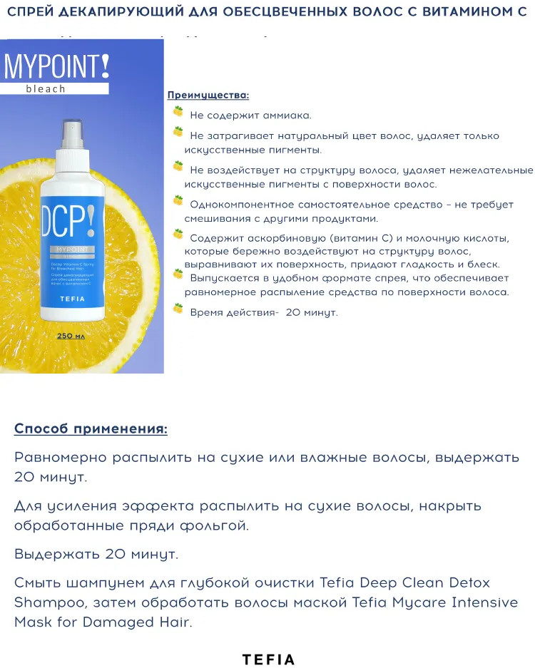 Tefia Спрей для обесцвеченных волос декапирующий с витамином С+111