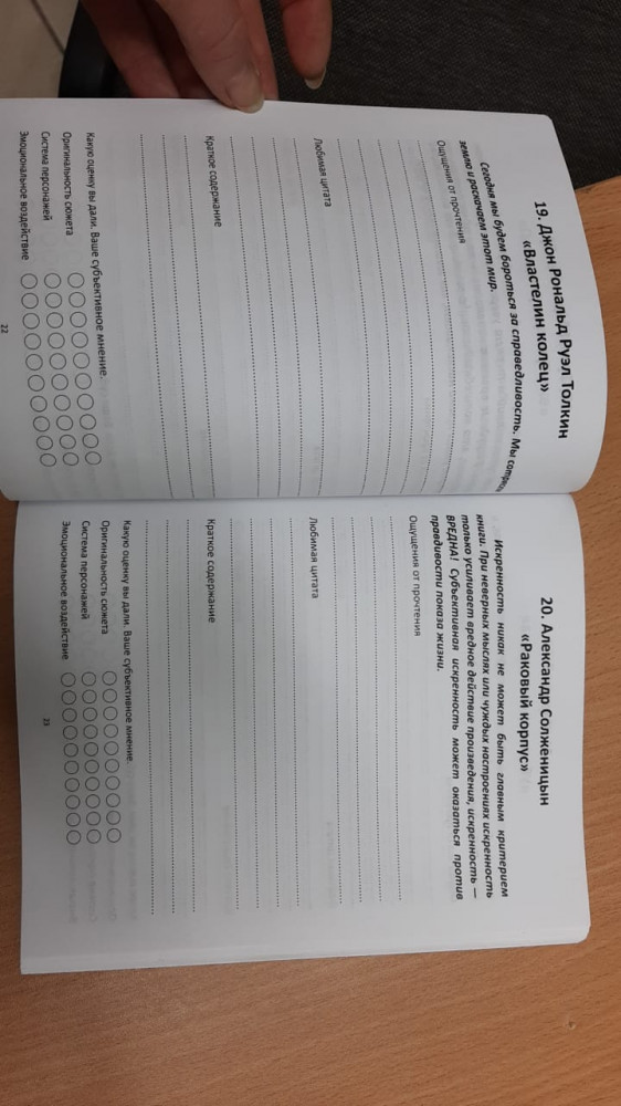 понравилось, что в нем очень много произведений, которые я хотела прочитать, но руки не доходили, а сейчас при таком выборе и цитат, которые написаны появилось желание читать и писать в этом дневнике свои эмоции и переживания.