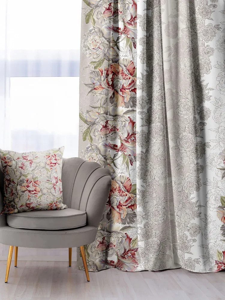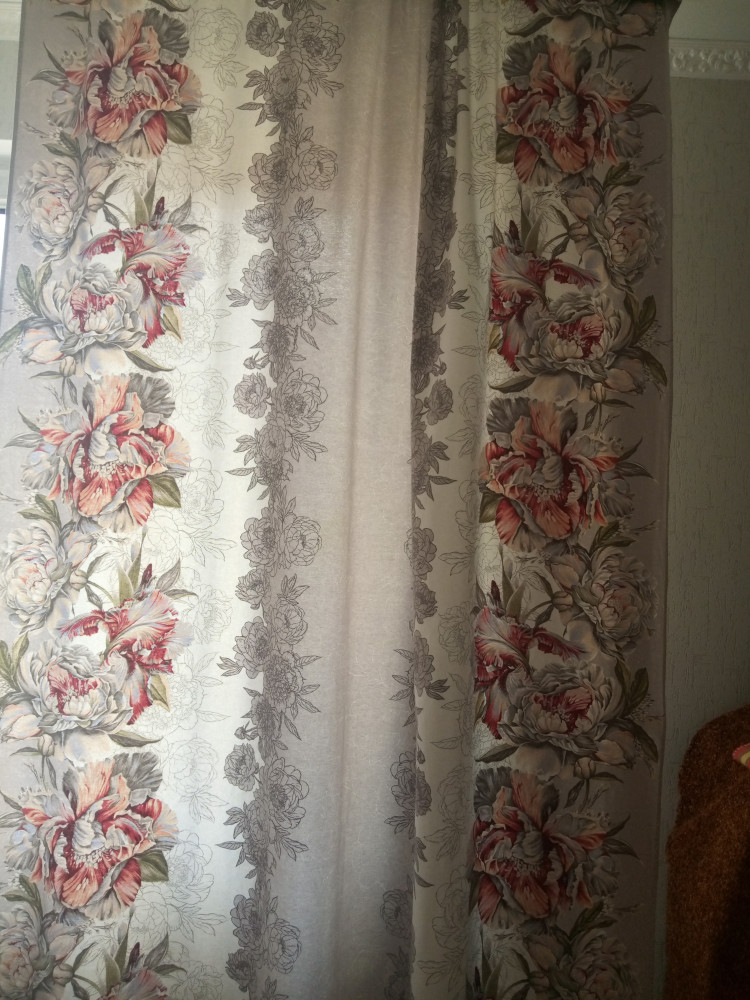 Хорошая, плотная, красивая штора. Обратите внимание: В упаковке идет ОДНА штора!! Расцветка, указанные размеры, совпадают с указанными на сайте. Шторная лента, швы, сама штора, все аккуратно сшито и пришито. Плотная ткань, рогожка. Серо- бежевого оттенка. Шторы взяла к покрывалу на кровать (диван) из той же серии ,,Пион". Смотрится всё просто шикарно. + Заодно столовый набор из той же серии: скатерть и салфетки. Получается всё вместе красиво и достойно.