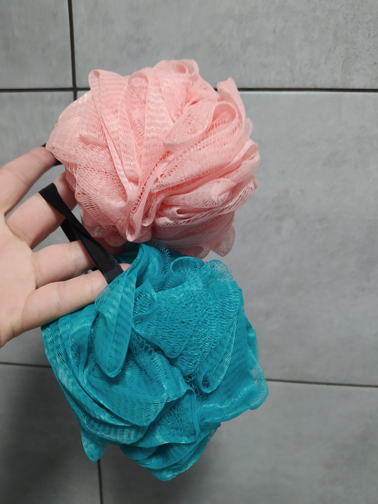 Зелёная мочалка развалилась через неделю. Пыталась собрать её в кучу, через пару использований опять развалилась. Только на выкид её. Розовая держится уже с полгода.