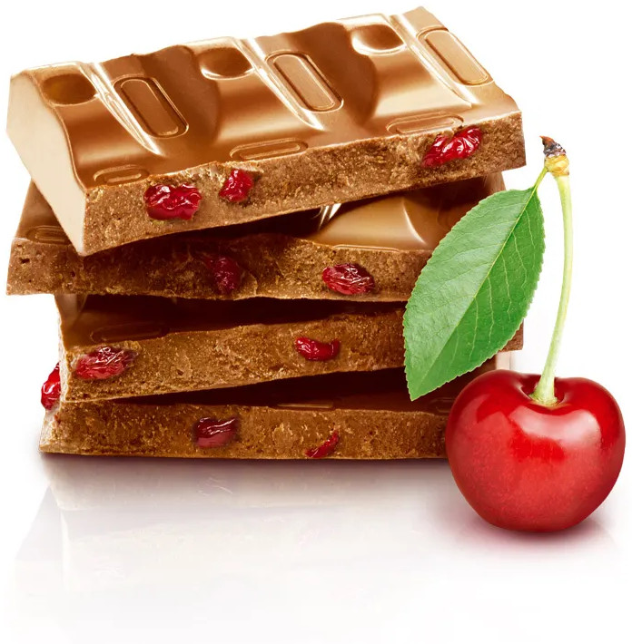 На вкус не похож на качественный молочный шоколад. Кусочки вишни присутствуют, но их немного.