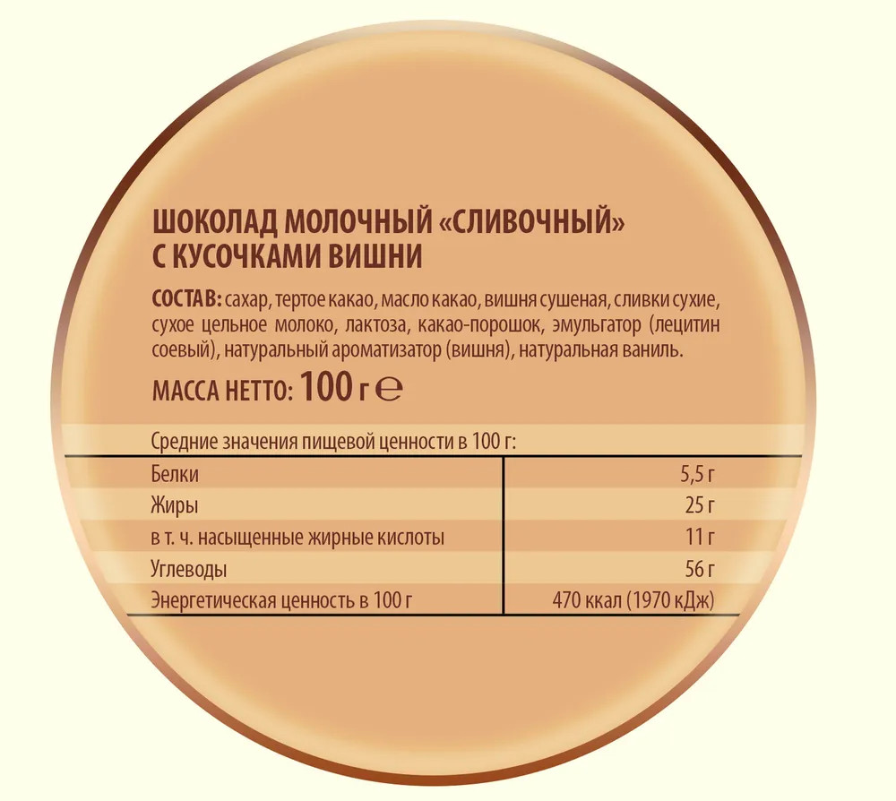 ощущение суррогата, вишни мало и без вкуса вишни, шоколад словно ароматизованная молоком и шоколадом неизвестная субстанция, состав на сайте указан не верно.