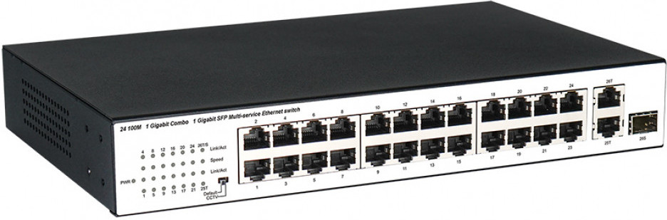 2 × 10/100/1000Base-T RJ45, 24 × 10/100/1000 RJ45
