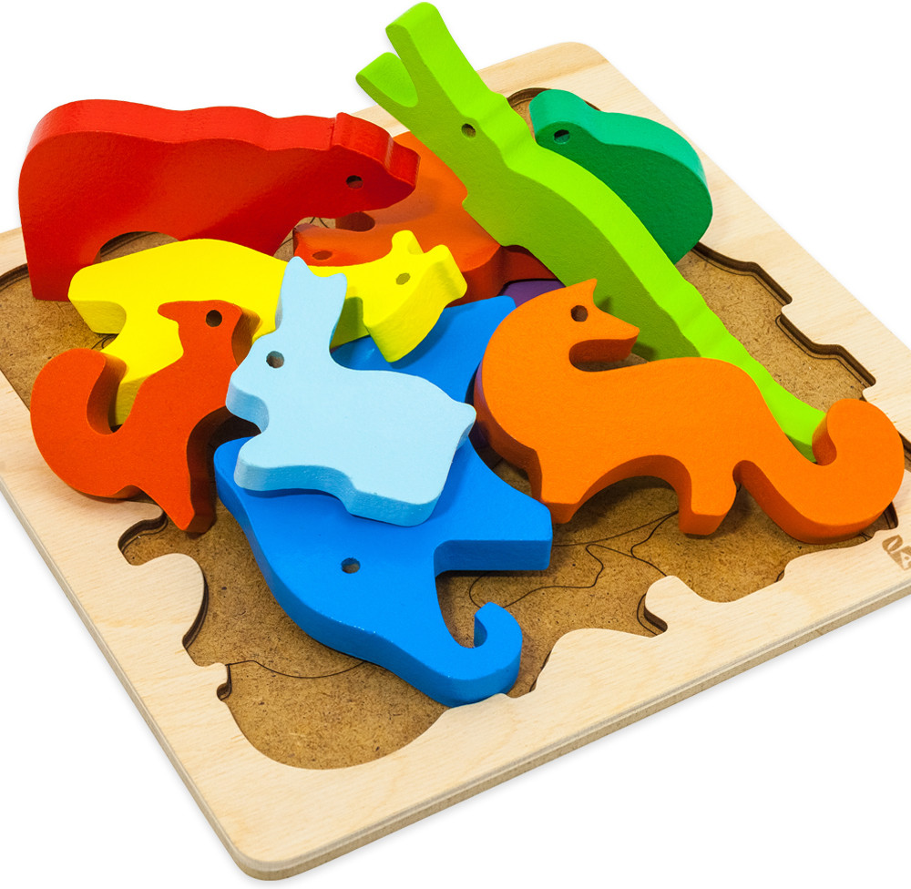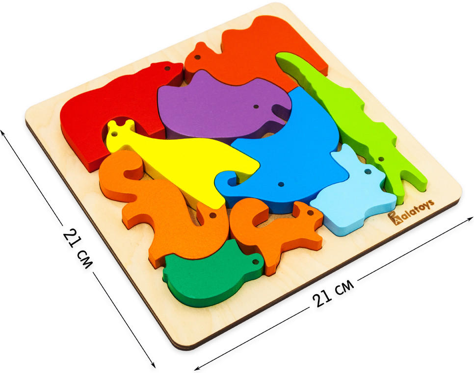 Конструктор-танграм «Животные» — это яркая деревянная игрушка для развития ребёнка.
