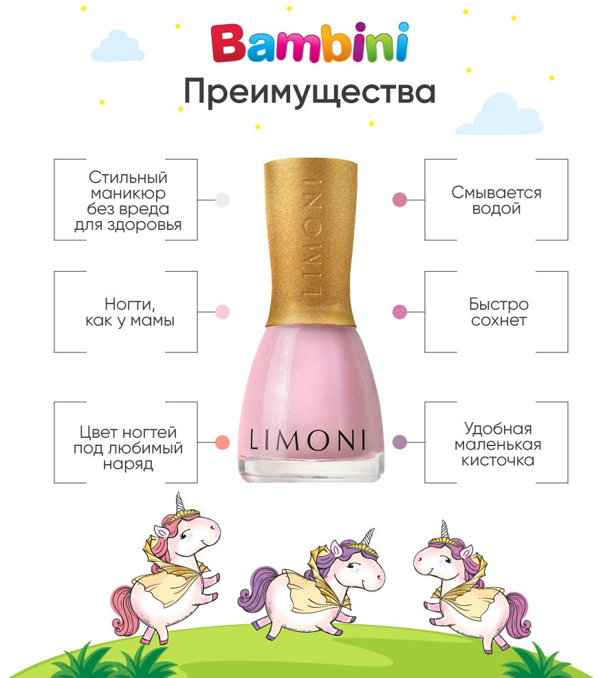 Limoni Набор для ногтей №23В данный момент этот товар отсутствует в продаже. Возможно, у нас найдется аналогичный или похожий товар здесь. Серия: Bambini Стильный маникюр для маленькой принцессы без вреда для здоровья — не сказка! Маленькие модницы мечтают быть похожими на своих мам. Поэтому флакончики в точности повторяют дизайн «взрослых» лаков для ногтей. Благодаря тому, что лак легко смывается водой, можно перекрашивать ногти столько раз, сколько пожелает маленькая принцесса. Вам понадобится буквально пара минут, чтобы безопасно сменить образ. Радости и восторгу юной леди не будет предела. Меняйте цвет по настроению, под цвет наряда, под цвет бантиков или любимой игрушки. Ваша красавица будет всегда в центре внимания — будь то праздник, прогулка или обычный день в саду. Средство держится до тех пор, пока девочка не решит его смыть. |