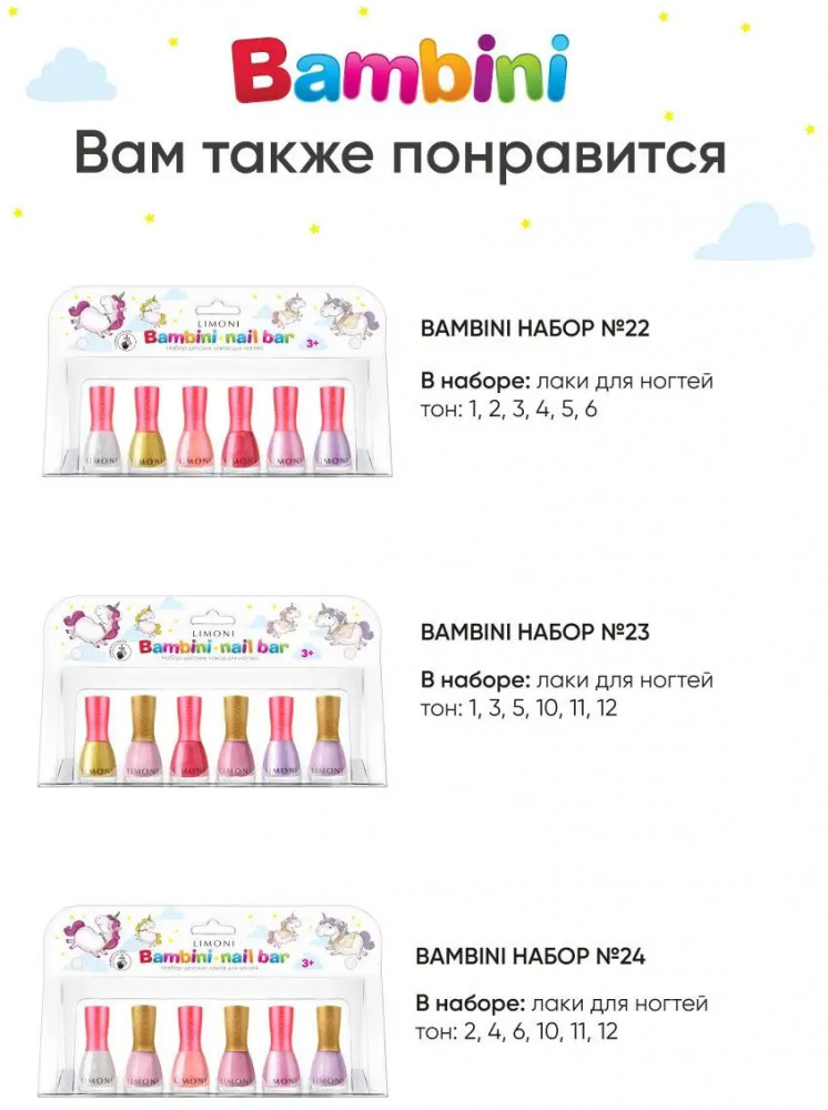 💳 Оплатить за товар можно при получении 🇰🇿 Есть бесплатная доставка по Казахстану от 1 дня 🎁 Копите бонусы с каждой покупки Серия: Bambini Стильный маникюр для маленькой принцессы без вреда для здоровья — не сказка! Маленькие модницы мечтают быть похожими на своих мам. Поэтому флакончики в точности повторяют дизайн «взрослых» лаков для ногтей. Благодаря тому, что лак легко смывается водой, можно перекрашивать ногти столько раз, сколько пожелает маленькая принцесса. Вам понадобится буквально пара минут, чтобы безопасно сменить образ. Радости и восторгу юной леди не будет предела. Меняйте цвет по настроению, под цвет наряда, под цвет бантиков или любимой игрушки. Ваша красавица будет всегда в центре внимания — будь то праздник, прогулка или обычный день в саду. Средство держится до тех пор, пока девочка не решит его смыть. |