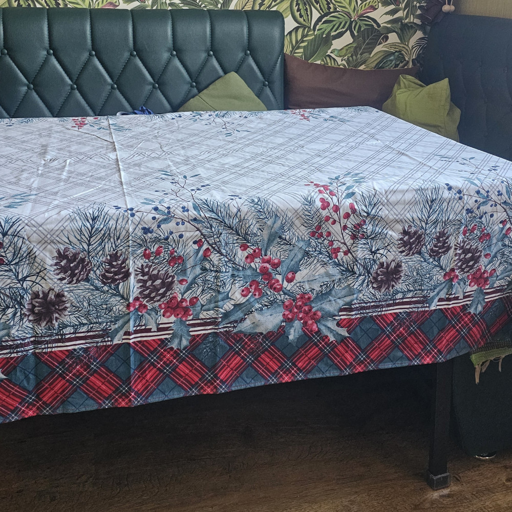 Отличная скатерть для семейных зимних торжеств, цвета сочные, рисунок нежный. Нравится новогодний вайб у скатерти с салфетками. Выкупила.