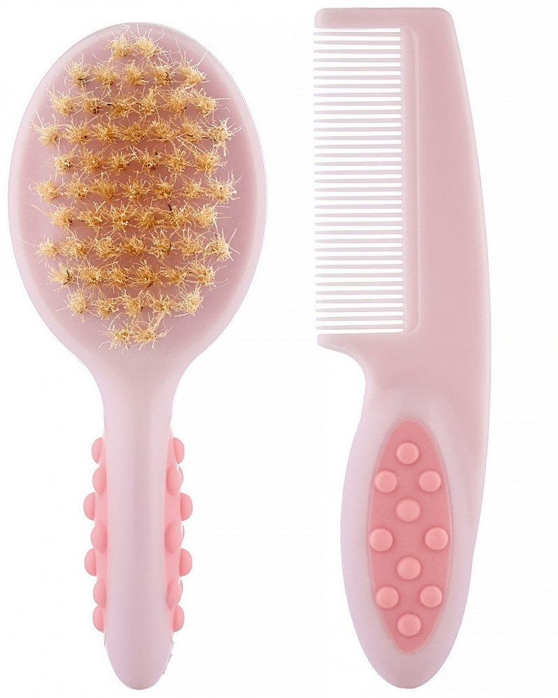 Расческа с натуральной щетиной и расческой-гребешком позволит наиболее комфортно ухаживать за волосами и кожей головы малыша. C помощью расчески с частыми, но не острыми зубчиками удобно расчесывать запутавшиеся и скатавшиеся волосы, а с помощью натуральной щетки можно пригладить их и придать аккуратный вид. Комплект расчесок подойдет для массажа кожи головы и вычесывания себорейных корочек.