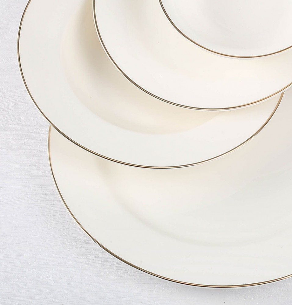 В комплекте были две тарелочки по цвету отличающие от остальных, холодного белого цвета , хотя все остальные теплого молочного цвета.