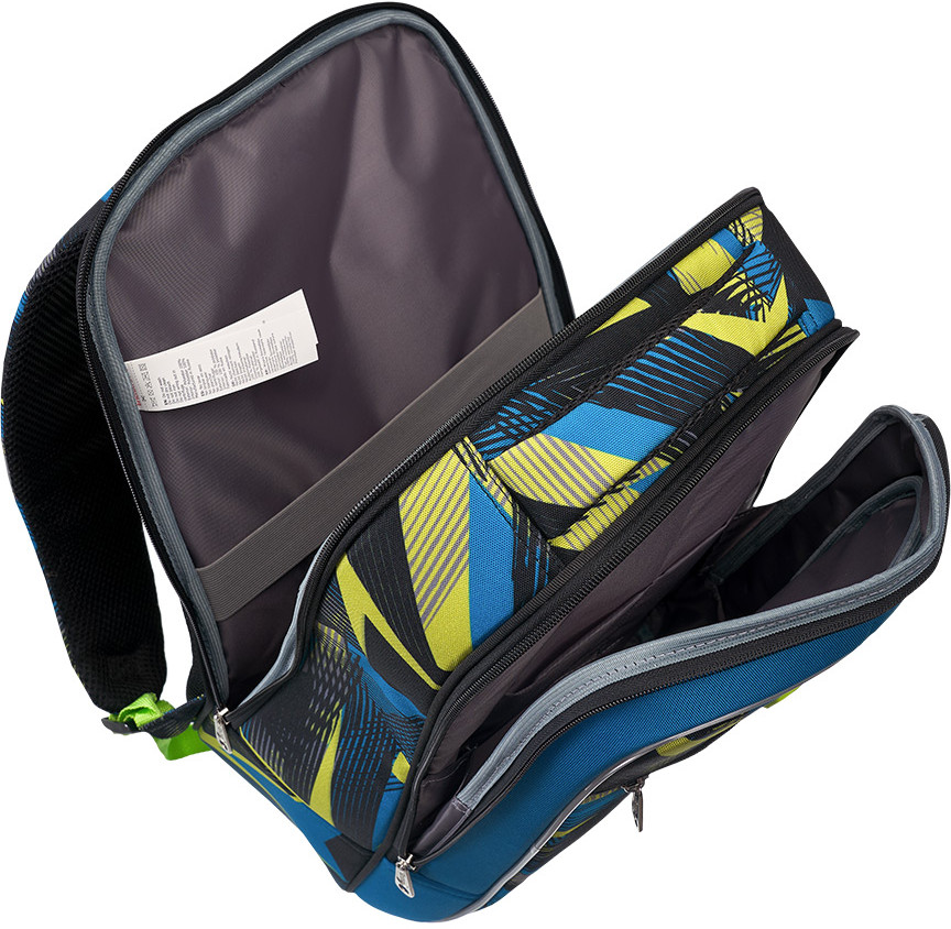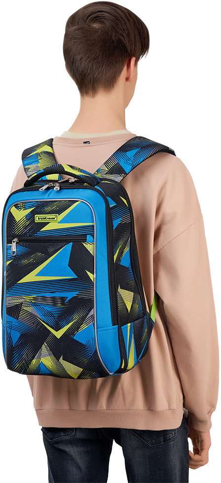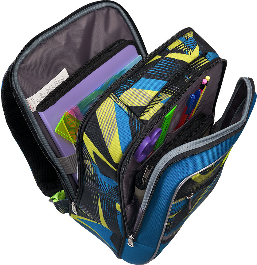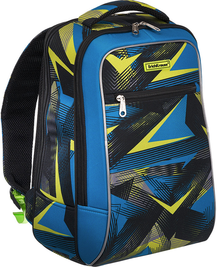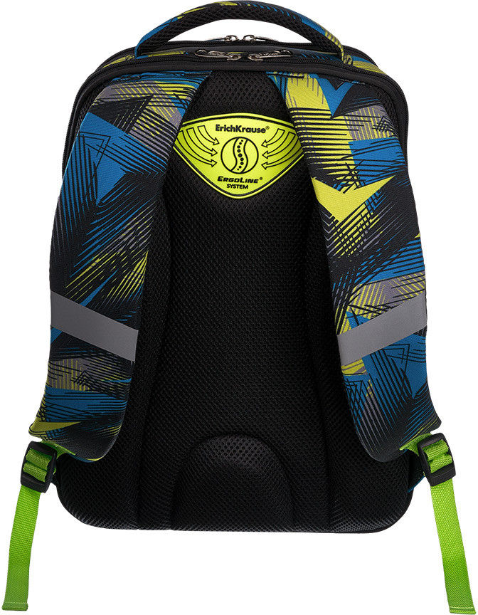 Эргономичная конструкция спинки ErgoLineSystem из мягких подушечек распределяет вес рюкзака и снижает нагрузку на позвоночник ребёнка. «Дышащая» ткань AirMesh и воздушные каналы между подушечками спинки препятствуют образованию влаги. Мягкие S-образные лямки не давят на плечи.