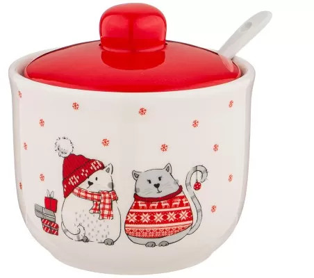 Сахарница небольшая 200 грамм, ложечка отличается по цвету. Она белая, а основной тон сахарницы, да и всей посуды этой серии слегка кремовый, ну или можно назвать слоновая кость. Изделие качественное. Веселый рисунок. Упаковано в коробочку. Подойдет на подарок.