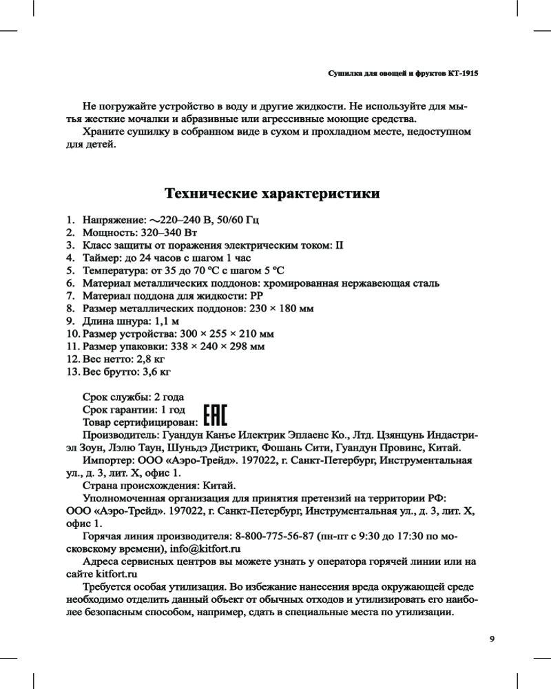 | Kitfort Сушилка для овощей и фруктов KT-1915-2