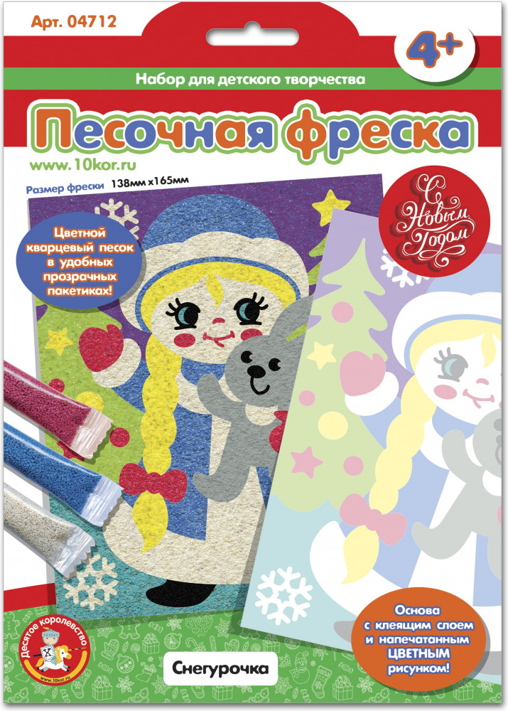 Песочная фреска «Снегурочка» — хороший тематический подарок для малышей, который усилит новогоднее настроение. Пусть Новый год будет не только весёлым, но и полезным для малыша! Работа с песочной фреской поможет развить творческие способности ребёнка, а также потренирует мелкую моторику рук, научит малыша аккуратности и вниманию.