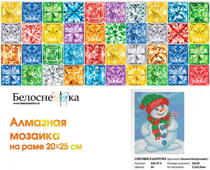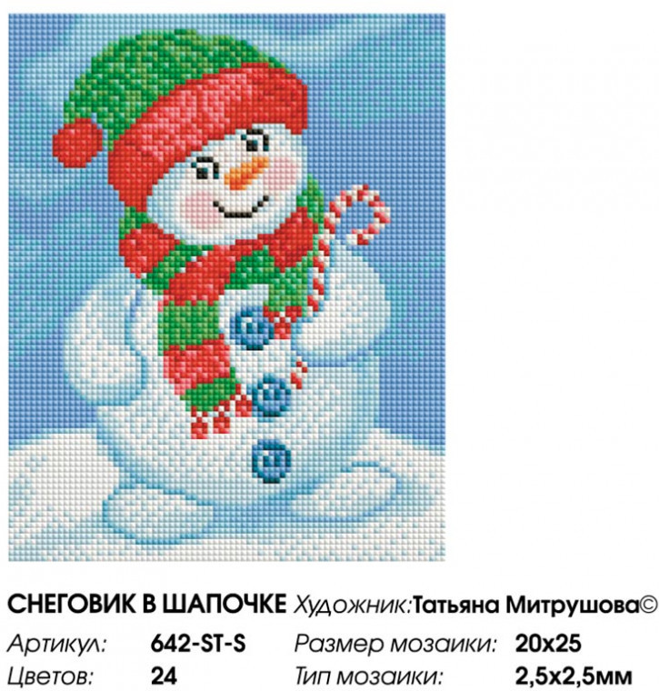 Белоснежка Мозаика алмазная «Снеговик в шапочке»-25%