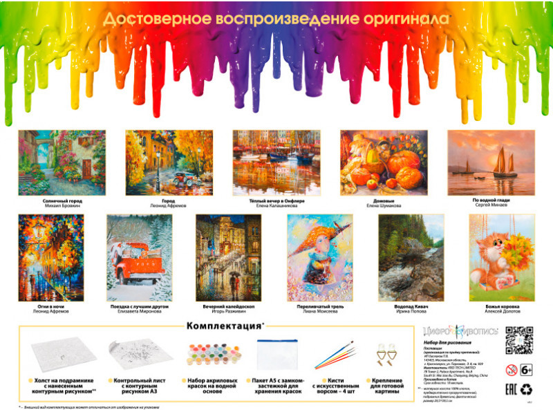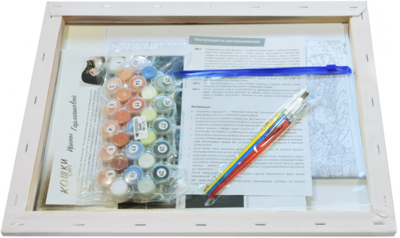 Внимание! Краски могут подсохнуть или быть слишком густыми — это не является браком, в этом случае добавьте небольшое количество воды и хорошо размешайте краску. Рекомендуем раскрашивать картину без длительных перерывов, чтобы краска в баночках не высыхала.
