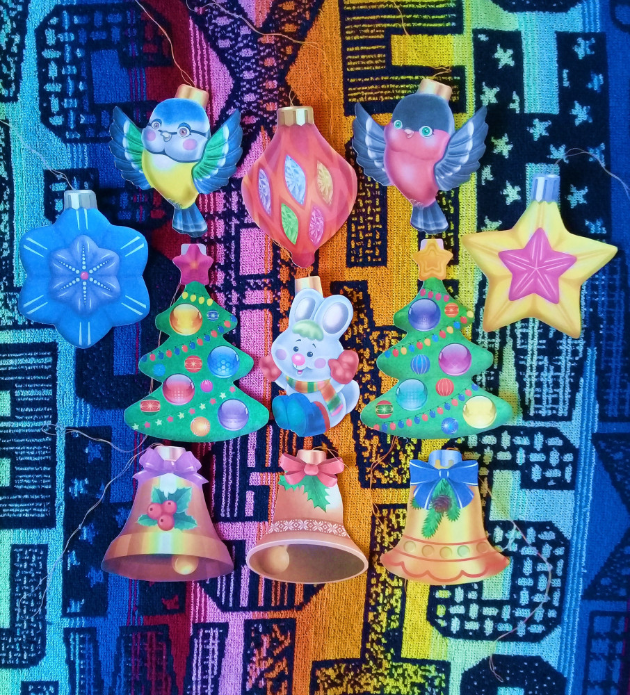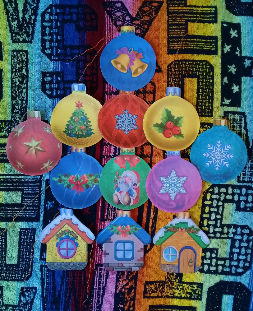Сделай новогодние игрушки-10% +14 много игрушек яркие легко вырезать
