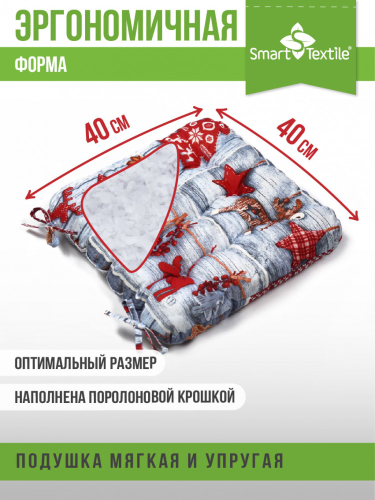 Smart Textile Подушка на стул «Чудеса»В данный момент этот товар отсутствует в продаже. Возможно, у нас найдется аналогичный или похожий товар здесь. Практичные и яркие сидушки из качественной, натуральной рогожки 100% хлопок. В производстве используются качественные и экологичные импортные красители позволяющие сохранить яркость рисунка при многократных стирках. |