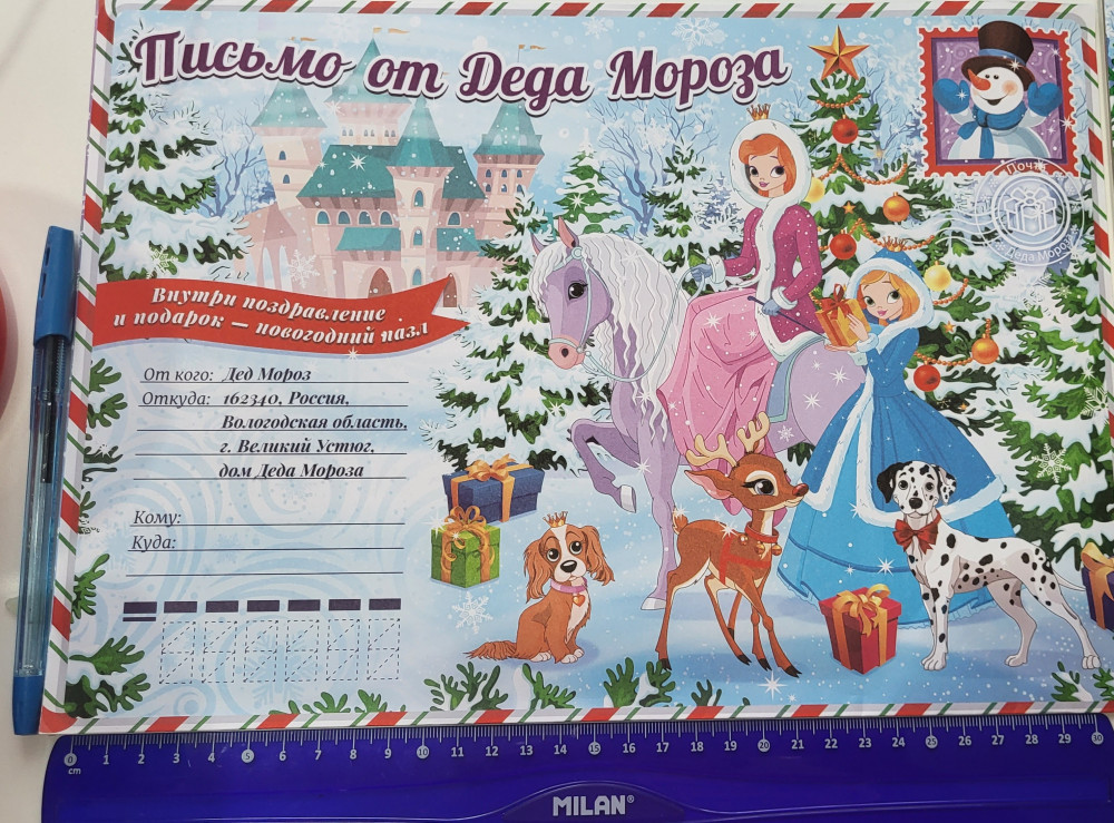 • большой подарочный конверт, подписанный самим Дедом Морозом.