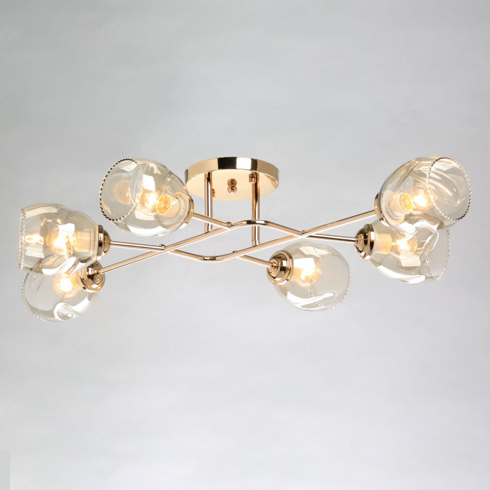 De City ЛюстраВ данный момент этот товар отсутствует в продаже. Возможно, у нас найдется аналогичный или похожий товар здесь. Серия: Акцент Универсальная модель для интерьеров различной тематики. Стеклянные плафоны золотистого цвета обеспечивают красивый свет Потолочный светильник компактного размера подойдут для стандартных потолков. Заменяемые источники света удобны в эксплуатации. Металлическое основание потолочного светильника гальванизировано в цвет золота. Стеклянные плафоны отлиты в сложную форму и гальванизированы в цвет шампань. |