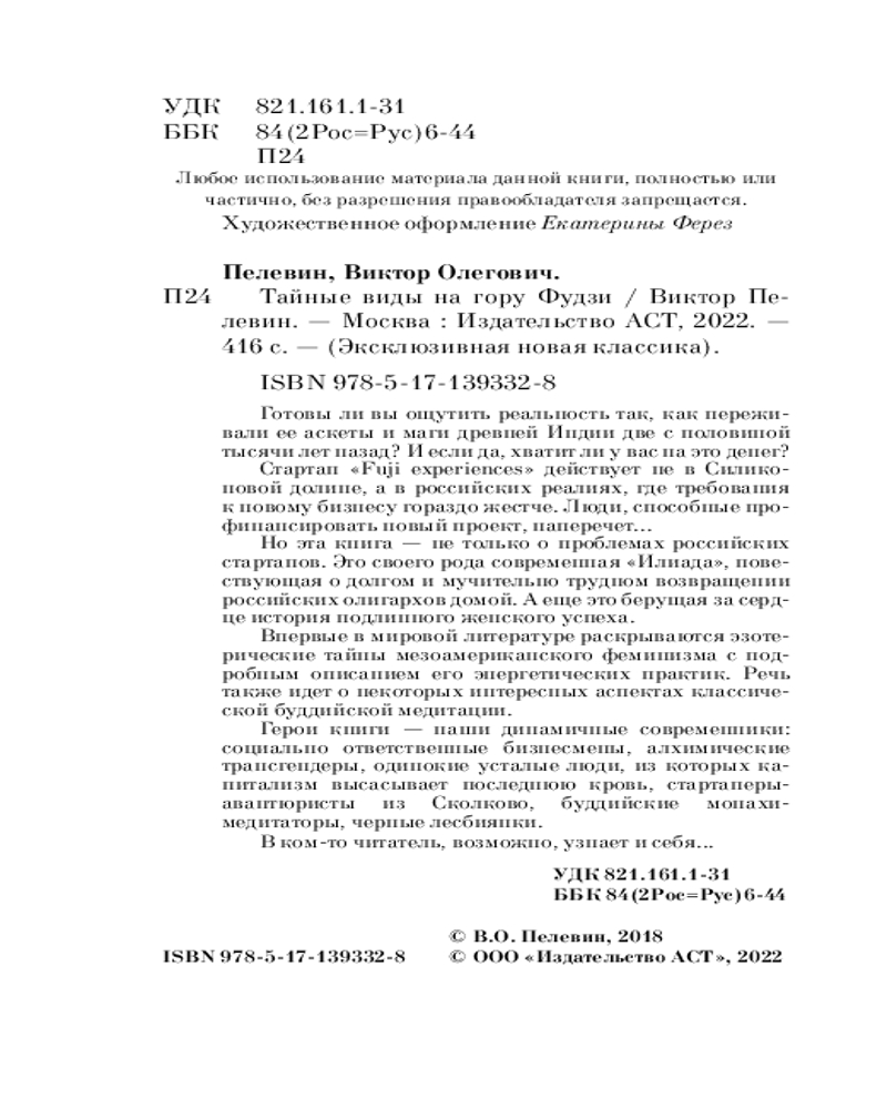 💳 Оплатить за товар можно при получении 🇰🇿 Есть бесплатная доставка по Казахстану от 1 дня 🎁 Копите бонусы с каждой покупки Серия: Эксклюзивная новая классика Готовы ли вы ощутить реальность так, как переживали ее аскеты и маги древней Индии две с половиной тысячи лет назад? И если да, хватит ли у вас на это денег? Стартап «Fuji experiences» действует не в Силиконовой долине, а в российских реалиях, где требования к новому бизнесу гораздо жестче. Люди, способные профинансировать новый проект, наперечет... Но эта книга — не только о проблемах российских стартапов. Это о долгом и мучительно трудном возвращении российских олигархов домой. А еще — берущая за сердце история подлинного женского успеха. Герои книги — наши динамичные современники: социально ответственные бизнесмены, алхимические трансгендеры, одинокие усталые люди, из которых капитализм высасывает последнюю кровь, стартаперы-авантюристы из Сколково, буддийские монахи-медитаторы, черные лесбиянки. В ком-то читатель, возможно, узнает и себя... |