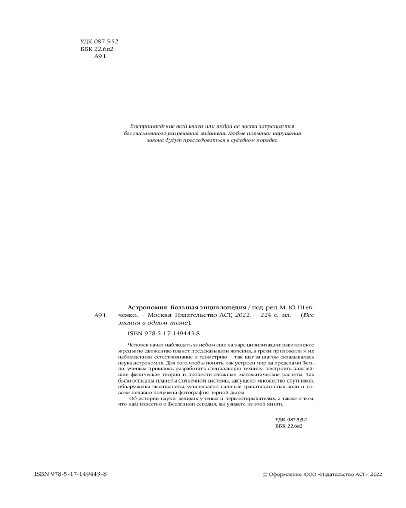 💳 Оплатить за товар можно при получении 🇰🇿 Есть бесплатная доставка по Казахстану от 1 дня 🎁 Копите бонусы с каждой покупки Серия: Все знания в одном томе Человек начал наблюдать за небом еще на заре цивилизации: вавилонские жрецы по движению планет предсказывали явления, а греки приложили к их наблюдениям естествознание и геометрию — так шаг за шагом складывалась наука астрономия. Для того чтобы понять, как устроен мир за пределами Земли, ученым пришлось разработать специальную технику, построить важнейшие физические теории и провести сложные математические расчеты. Так были описаны планеты Солнечной системы, запущено множество спутников, обнаружены экзопланеты, установлено наличие гравитационных волн и совсем недавно получена фотография черной дыры. |