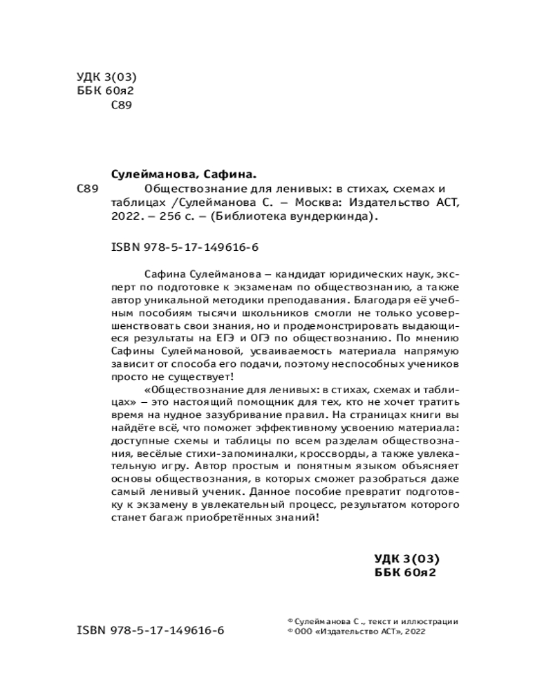 Обществознание для ленивых. В стихах, схемах и таблицахВ данный момент этот товар отсутствует в продаже. Возможно, у нас найдется аналогичный или похожий товар здесь. Серия: Библиотека вундеркинда «Обществознание для ленивых: в стихах, схемах и таблицах» — это настоящий помощник для тех, кто не хочет тратить время на нудное зазубривание правил. На страницах книги вы найдёте всё, что поможет эффективному усвоению материала: доступные схемы и таблицы по всем разделам обществознания, весёлые стихи-запоминалки, кроссворды, а также увлекательную игру. Автор простым и понятным языком объясняет основы обществознания, в которых сможет разобраться даже самый ленивый ученик. Данное пособие превратит подготовку к экзамену в увлекательный процесс, результатом которого станет багаж приобретённых знаний! |