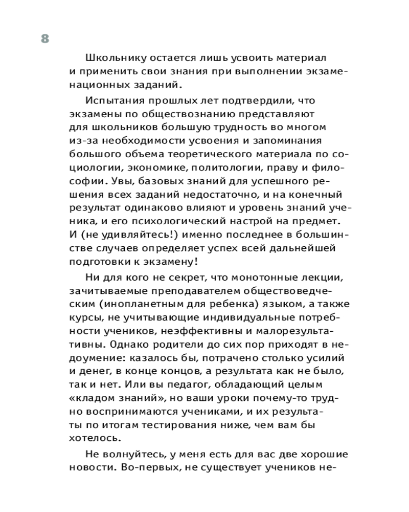 | Сафина Сулейманова — кандидат юридических наук, эксперт по подготовке к экзаменам по обществознанию, а также автор уникальной методики преподавания. Благодаря её учебным пособиям тысячи школьников смогли не только усовершенствовать свои знания, но и продемонстрировать выдающиеся результаты на ЕГЭ и ОГЭ по обществознанию. По мнению Сафины Сулеймановой, усваиваемость материала напрямую зависит от способа его подачи, поэтому неспособных учеников просто не существует! |