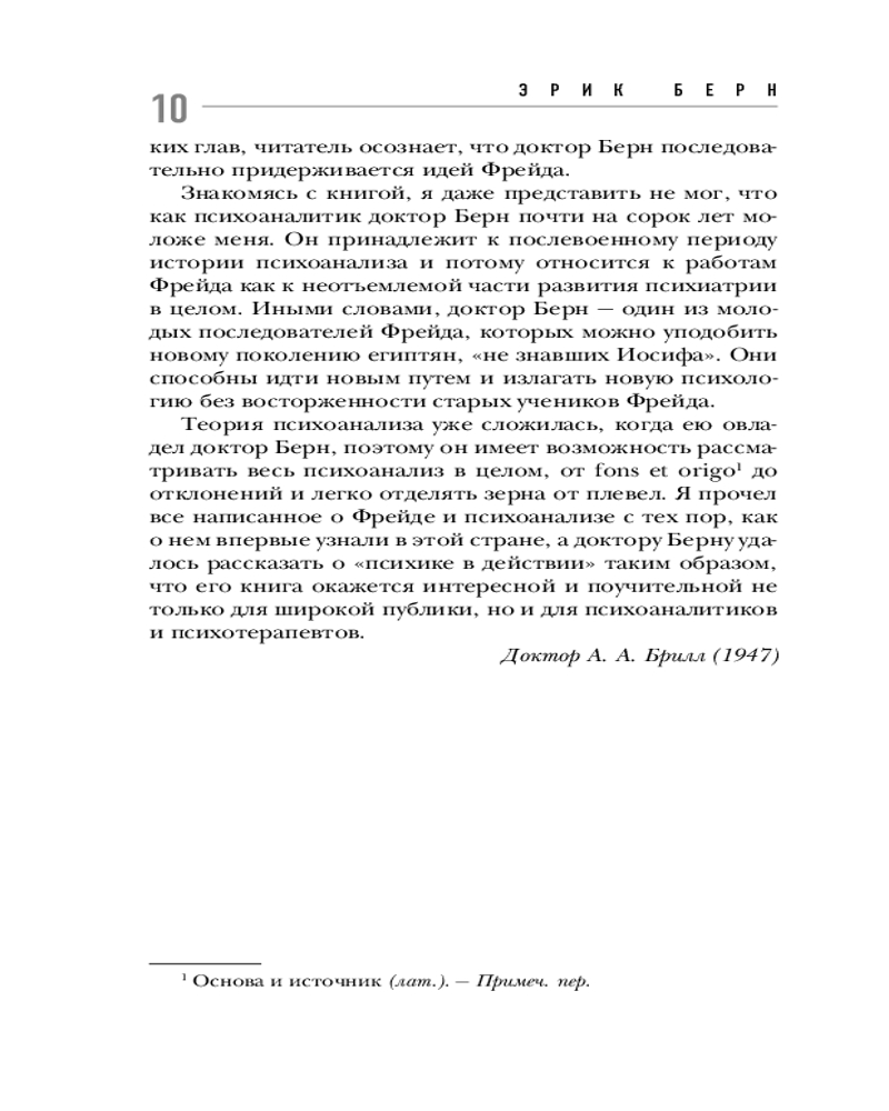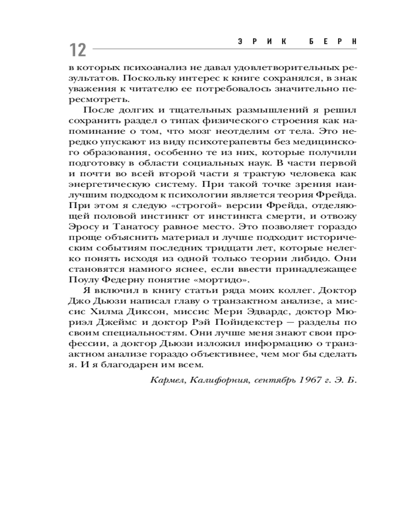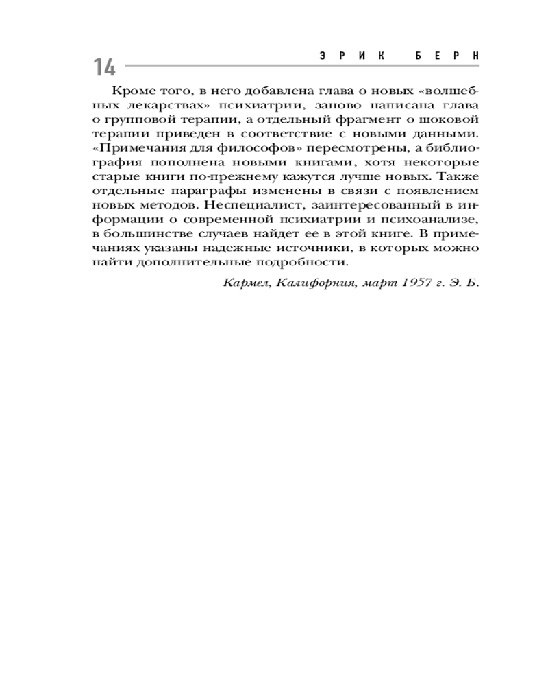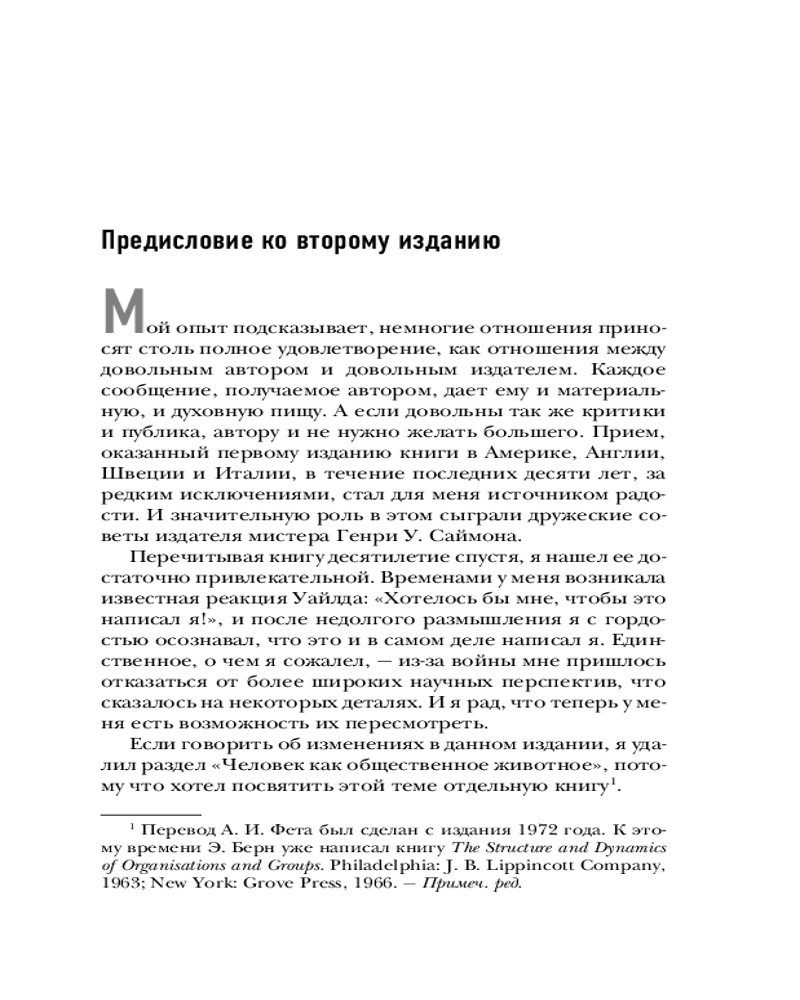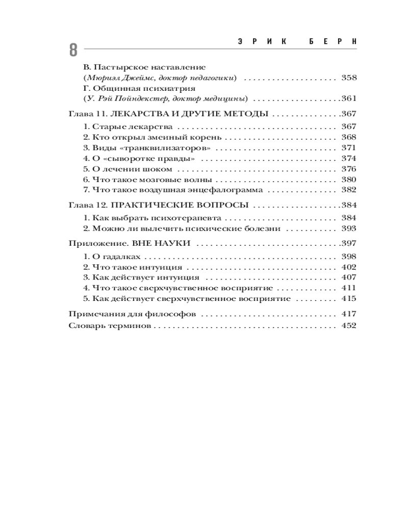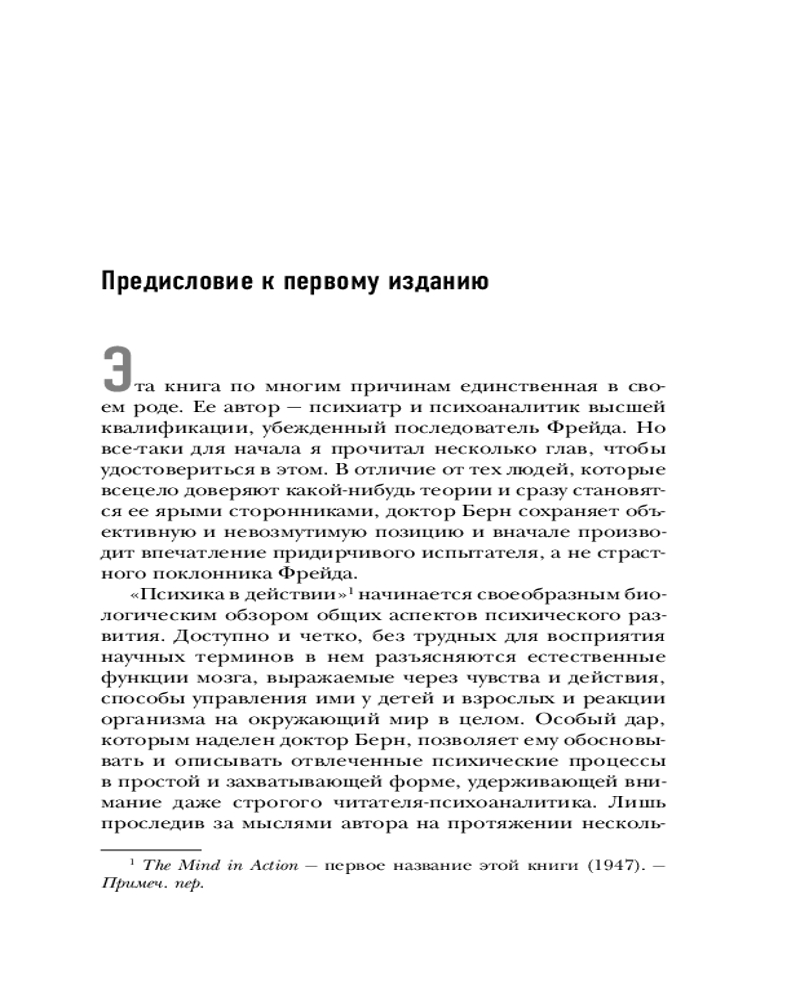 Это книга из категории обучающих, но читается как какое-то захватывающее приключенческое повествование. По сути так и есть - вам предстоит попутешествовать по закоулкам психики, найти скрытые ходы, мышиные лазы, внезапные комнаты, замурованные двери, слуховые окна и подземные бомбоубежища в недрах мозга. Невероятно интересно. До этого начала читать "Игры" и "Людей" - пожалела, пока отложила. Теперь вот после введения думаю легче пойдет.