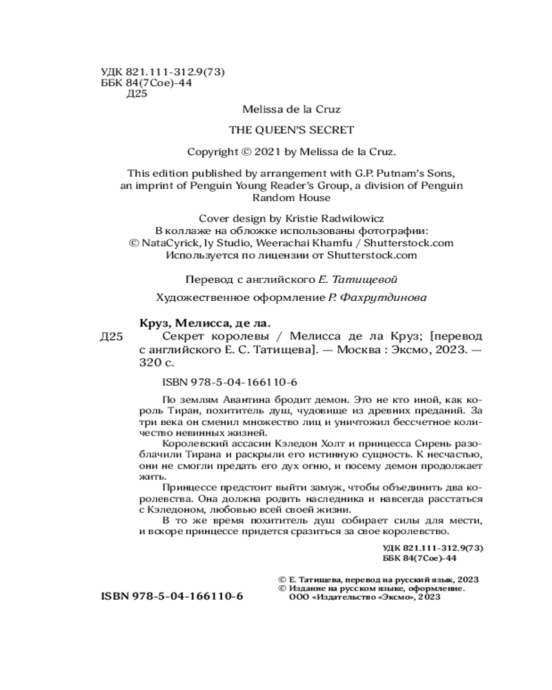 В данный момент этот товар отсутствует в продаже. Возможно, у нас найдется аналогичный или похожий товар здесь. Серия: Young Adult. Секрет королевы По землям Авантина бродит демон. Это не кто иной, как король Тиран, похититель душ, чудовище из древних преданий. За три века он сменил множество лиц и уничтожил бессчетное количество невинных жизней.