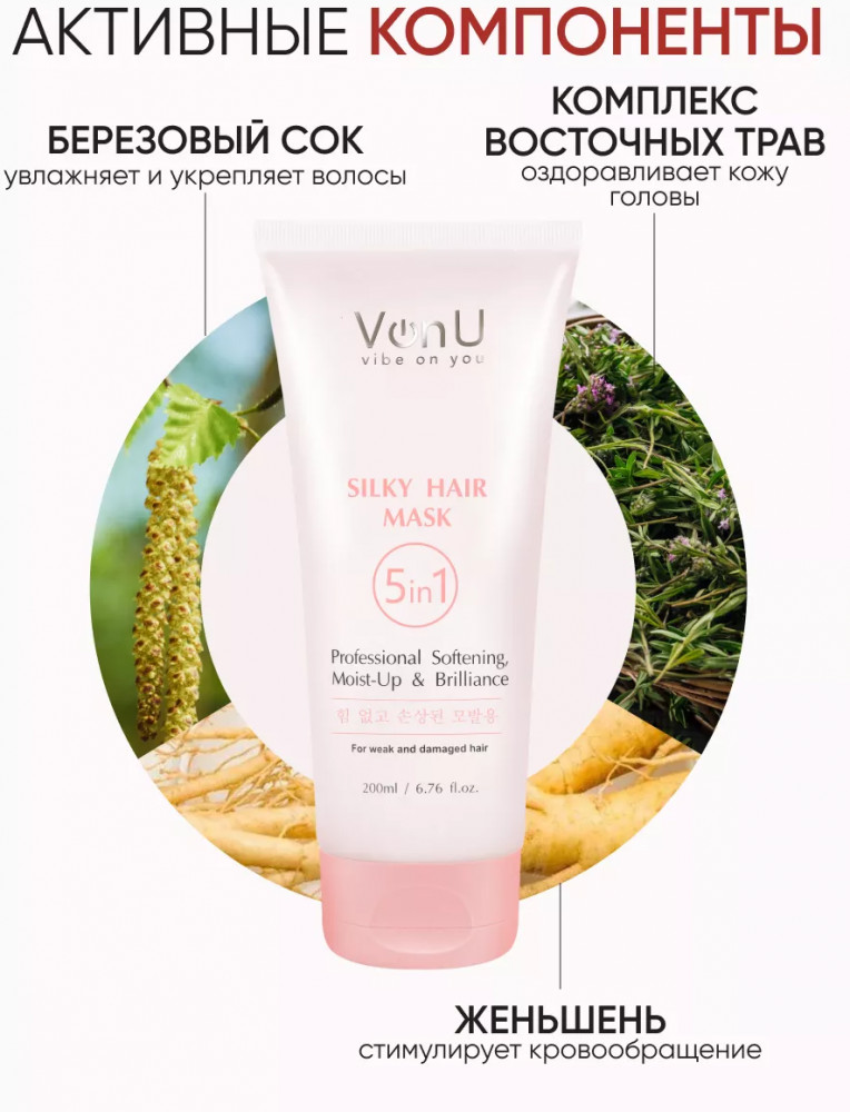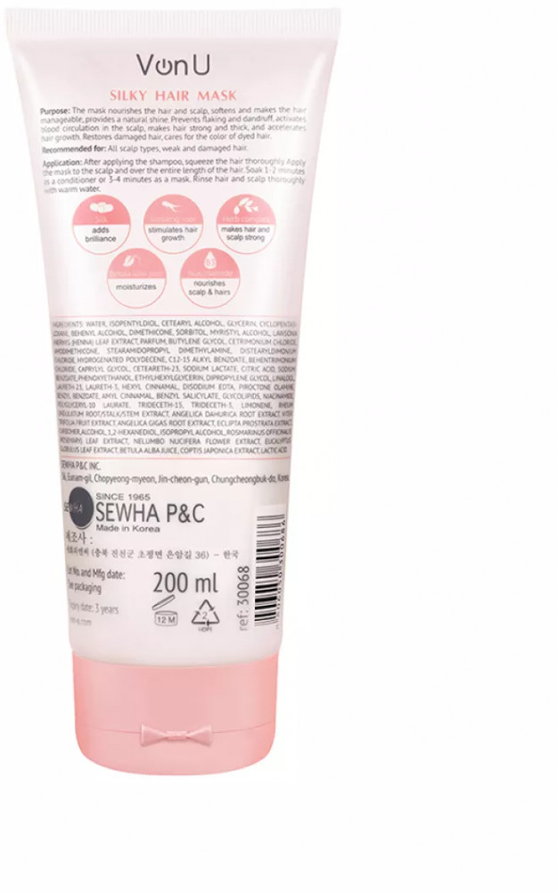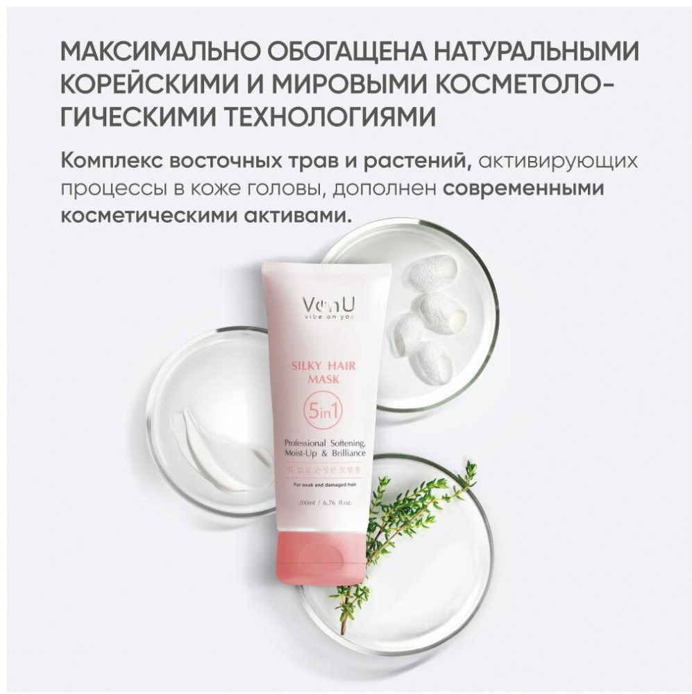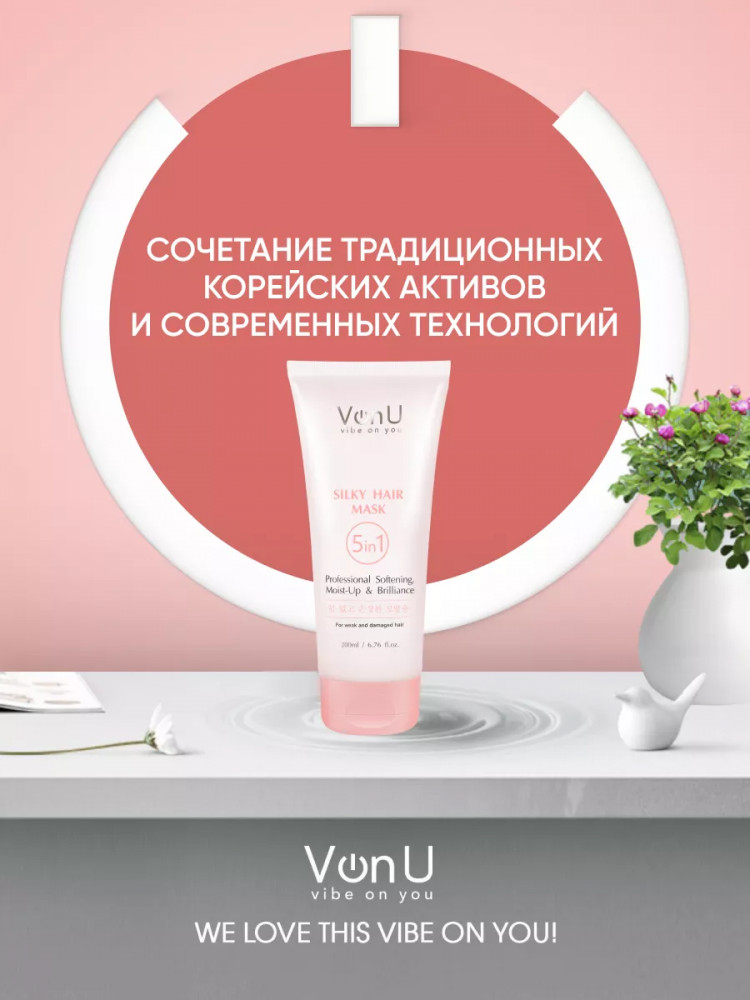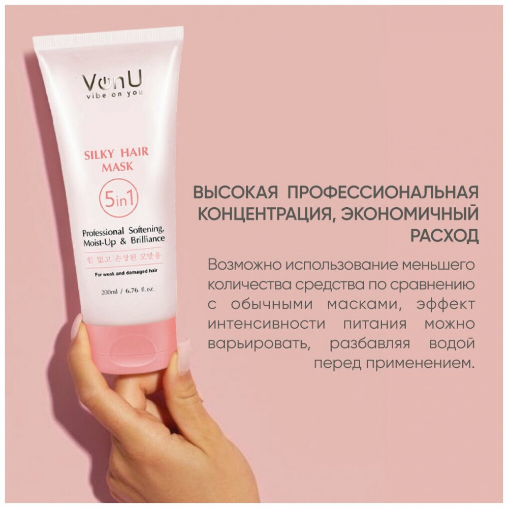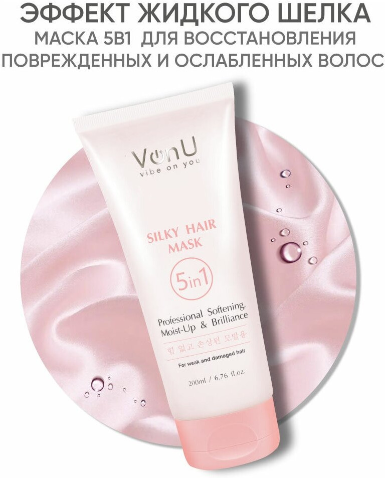 Von-U Маска для ослабленных и поврежденных волос «Шелк для волос 5 в 1»-38% +165