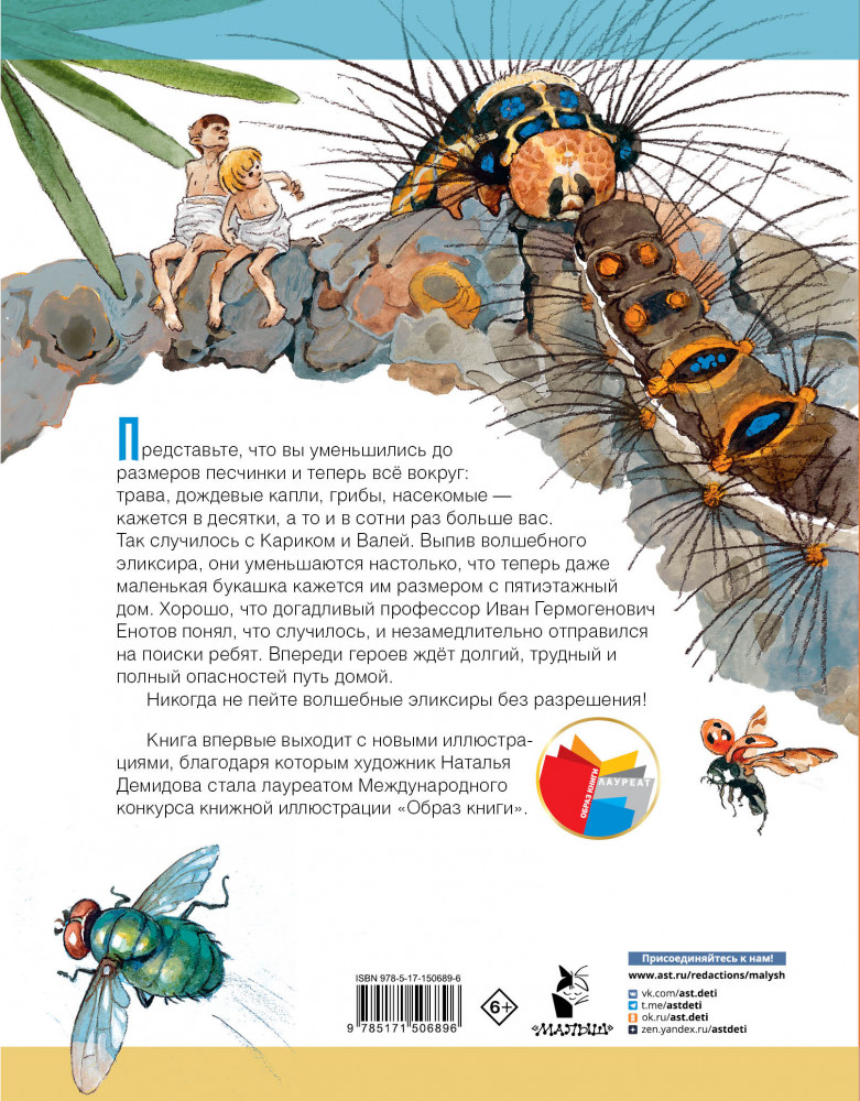 💳 Оплатить за товар можно при получении 🇰🇿 Есть бесплатная доставка по Казахстану от 1 дня 🎁 Копите бонусы с каждой покупки Серия: Детская иллюстрированная классика Ян Леопольдович Ларри (1900-1977) — писатель-фантаст. Его повесть «Необыкновенные приключения Карика и Вали», написанная в 1937 году, имела невероятный успех. Повесть неоднократно переиздавали и экранизировали. А написана она была по просьбе Самуила Маршака, который хотел привлечь внимание детской аудитории к науке и энтомологии — науке о насекомых. Это невероятная история про брата и сестру, Карика и Валю, которые, выпив волшебный эликсир, уменьшились до размеров песчинки и попали в «травяные джунгли», кишащие гигантскими насекомыми. Опасности здесь подстерегают героев на каждом шагу. Хорошо, что профессор Иван Гермогенович Енотов сразу понял, что произошло с ребятами и отправился на их поиски. |