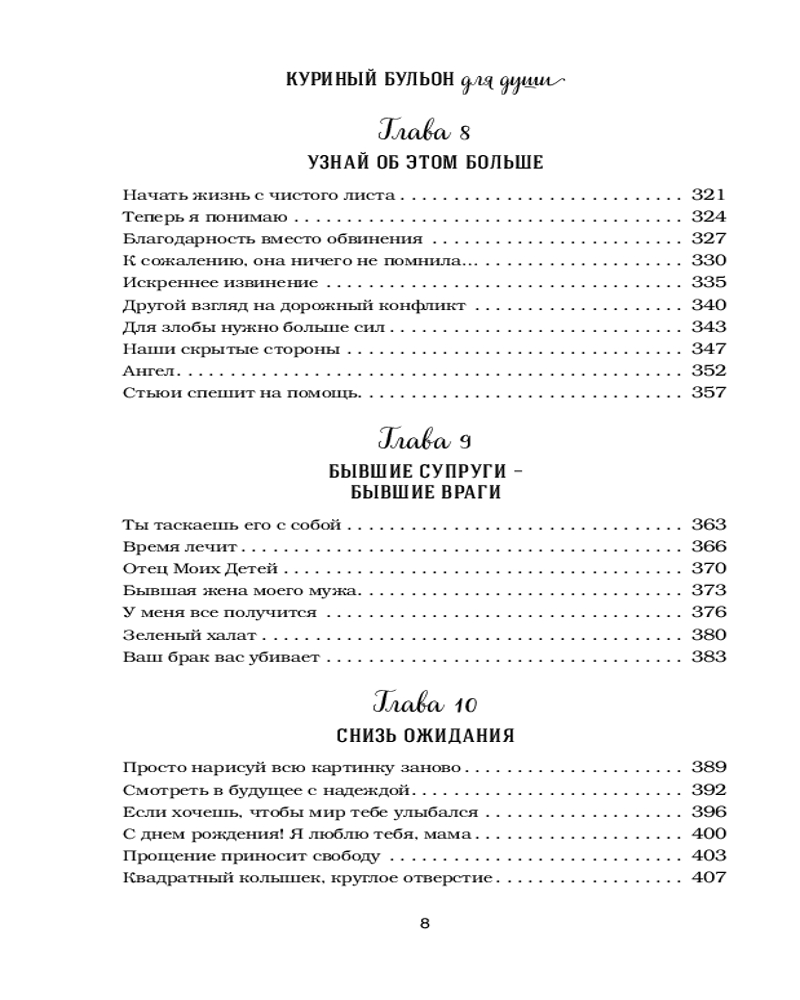 Куриный бульон для души. Прощение исцеляет. 101 теплая история о том, как оставить прошлое и начать двигаться впередВ данный момент этот товар отсутствует в продаже. Возможно, у нас найдется аналогичный или похожий товар здесь. Серия: Куриный бульон для души (обложка) История создания книги «Куриный бульон» вдохновляет не меньше, чем маленькие истории, из которых она состоит. |