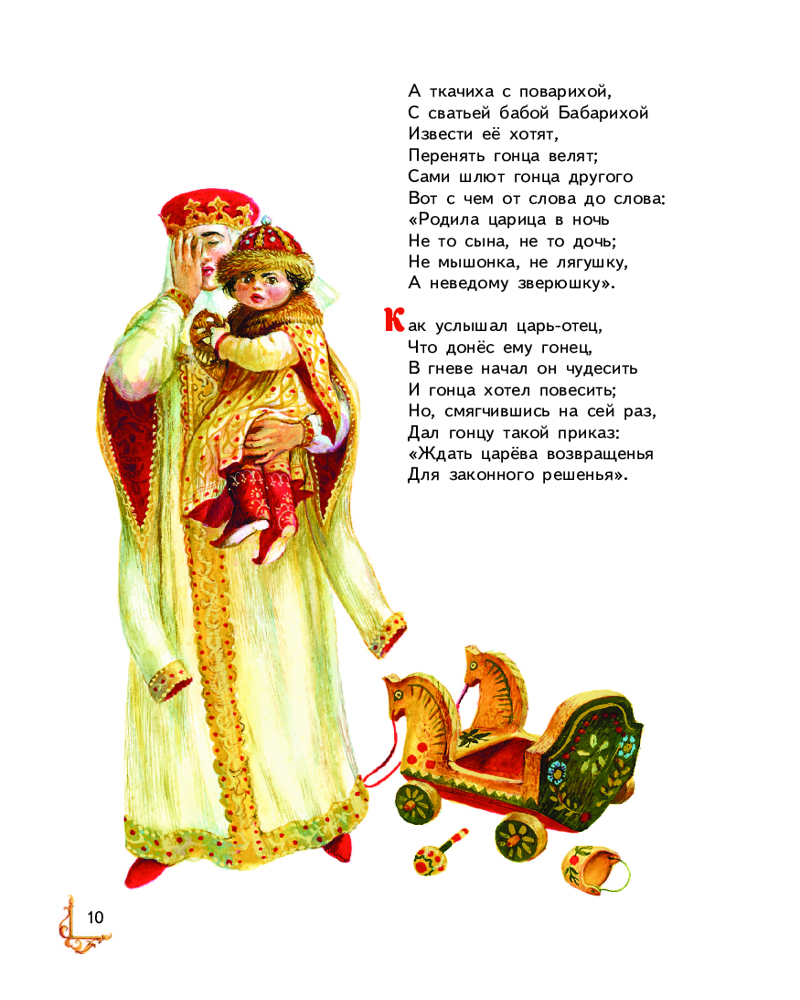 Волшебные поэтические сказки Александра Сергеевича Пушкина с красочными и подробными иллюстрациями известной московской художницы Анны Власовой — это чудесный подарок, который можно не только читать, но и долго-долго рассматривать: пересчитывать сказочных богатырей, любоваться красотой прекрасных царевен и вместе с весёлой белочкой напевать «Во саду ли, в огороде...». Сказки А.С. Пушкина необходимы в каждом доме, где есть дети! |