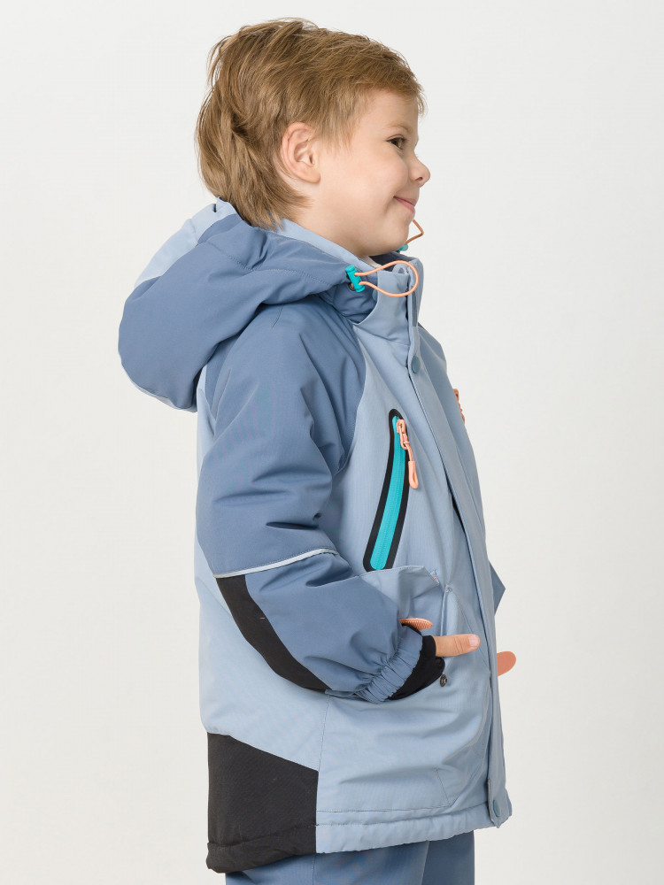 Рукава внутри из скользящего подклада для комфортного и быстрого переодевания. Нейлоновые вставки усилители на локтях имеют 40000 циклов истираний для лучшей износостойкости. На уровне бедер внутри изделия снегозащитная планка-защита от снега, на эластичной резинке и застежкой на кнопках. Верхние карманы спереди герметично залиты с молнией от проникновения влаги. Внутренняя сторона капюшона, воротника и карманов — это мягкий материал для приятных тактильных ощущений при соприкосновении с кожей. Даже забыв перчатки, теплые карманы готовы согреть ручки. Световозвращающие детали на куртке обезопасят в темноте. Фишка модели лейбл внутри изделия, на котором ребенок может сам написать свое имя. Зонированный подклад, воротник и средняя часть спинки из флиса, перед и боковая часть спинки уникальный фольгированный подклад армированный сеткой для терморегуляции. Утеплитель sofilate 200гр/м². Стильная свободная куртка для мальчиков идеально выдержит температурный режим до −25 мороза.