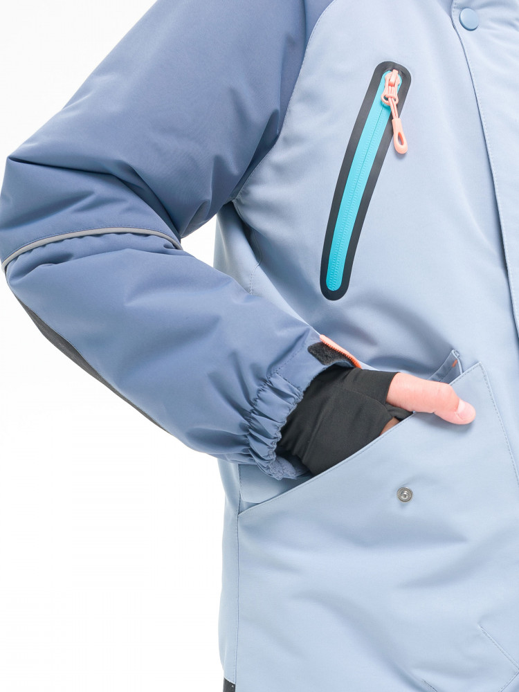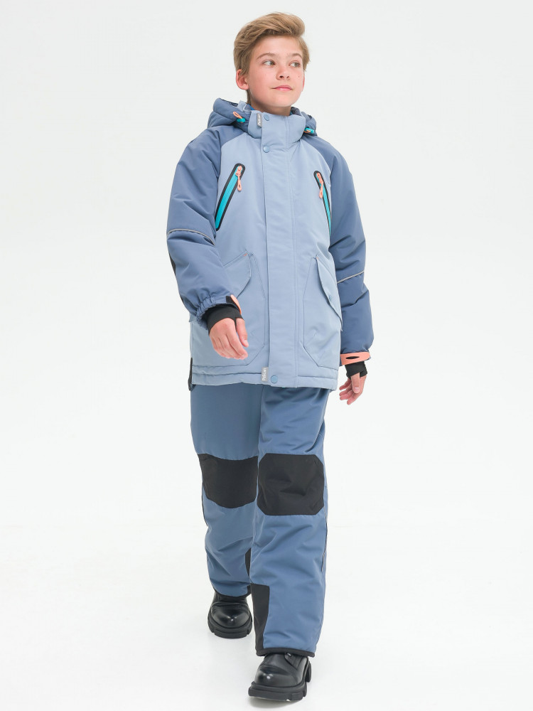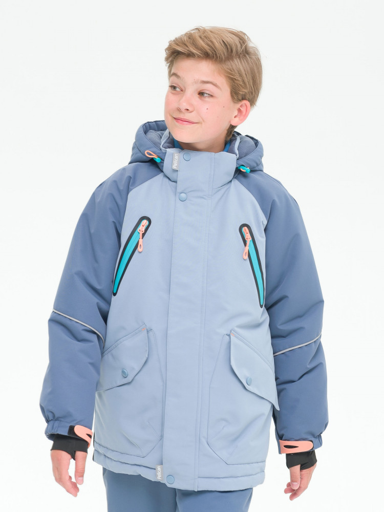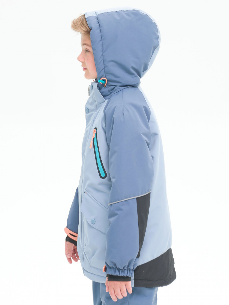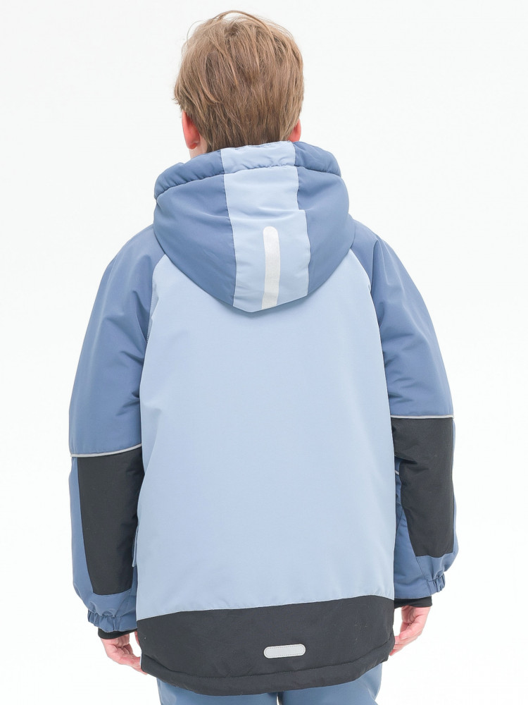 Рукава внутри из скользящего подклада для комфортного и быстрого переодевания. Нейлоновые вставки усилители на локтях имеют 40000 циклов истираний для лучшей износостойкости. На уровне бедер внутри изделия снегозащитная планка-защита от снега, на эластичной резинке и застежкой на кнопках. Верхние карманы спереди герметично залиты с молнией от проникновения влаги. Внутренняя сторона капюшона, воротника и карманов — это мягкий материал для приятных тактильных ощущений при соприкосновении с кожей. Даже забыв перчатки, теплые карманы готовы согреть ручки. Световозвращающие детали на куртке обезопасят в темноте. Фишка модели лейбл внутри изделия, на котором ребенок может сам написать свое имя. Зонированный подклад, воротник и средняя часть спинки из флиса, перед и боковая часть спинки уникальный фольгированный подклад армированный сеткой для терморегуляции. Утеплитель sofilate 200гр/м². Стильная свободная куртка для мальчиков идеально выдержит температурный режим до −25 мороза.