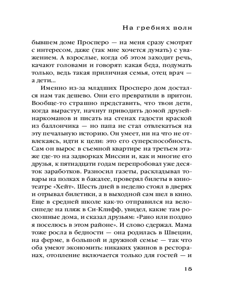 «На гребнях волн» — роман о турбулентном времени больших перемен, происходивших с каждым, кто когда-то был подростком. |
