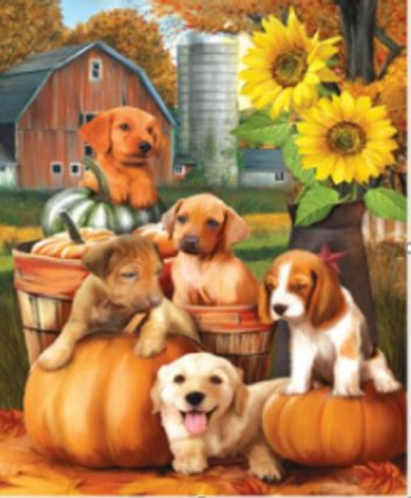 Алмазная мозаика — это популярный набор для творчества, в котором изображение выкладывается блестящими акриловыми кристаллами на схему, покрытую клеевой основой. На мозаике изображена деревенская атмосфера жизнерадостных щенят. Картина подразумевает полное сплошное заполнение стразами. Элементы мозаики представляют собой коллекцию глянцевых кристаллов из 30 различных цветов в пронумерованных пакетиках.
