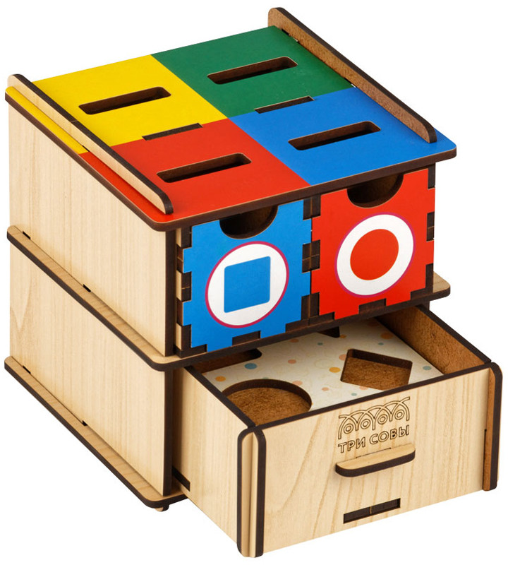 Три совы Игра обучающая «Геометрические фигуры»В данный момент этот товар отсутствует в продаже. Возможно, у нас найдется аналогичный или похожий товар здесь. Развивающая игрушка, которая объединяет сразу несколько интересных игр и занятий: вкладыши, сортировка, счёт и сравнение предметов. Комодик состоит из корпуса, четырех ящиков для сортировки и большого ящика для хранения, где находятся 4 основы и 16 фигурок. Фигурки можно раскладывать по соответствующим местам на основах или вставлять фигурки в специальные прорези на корпусе, группируя по цвету и форме. |