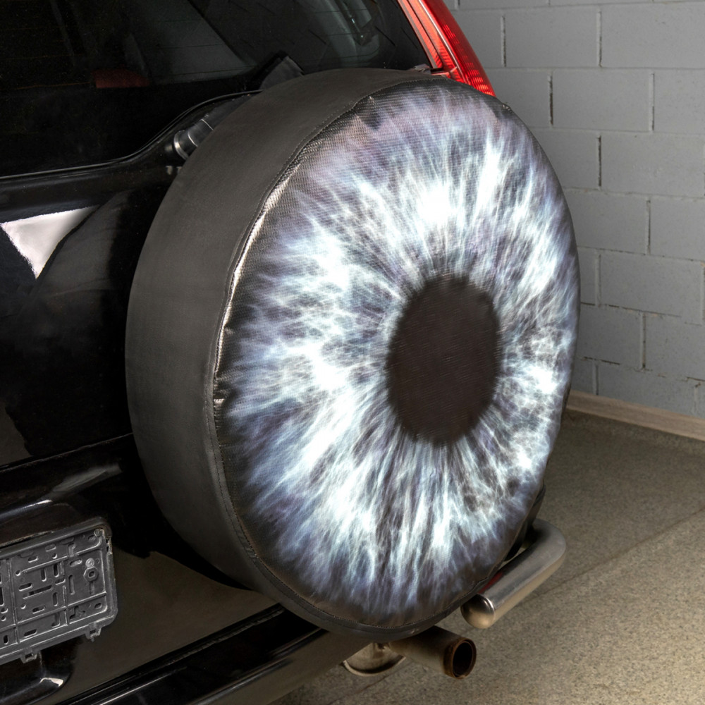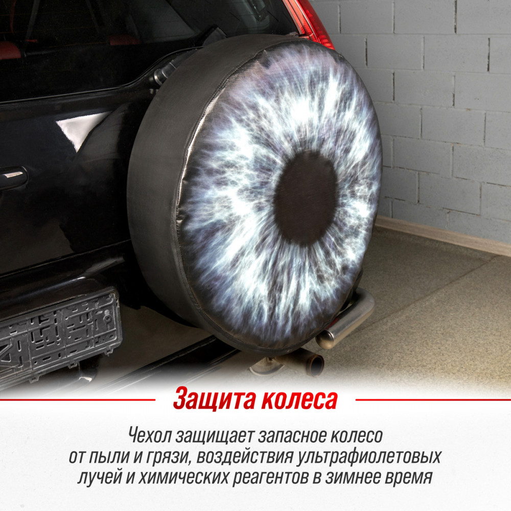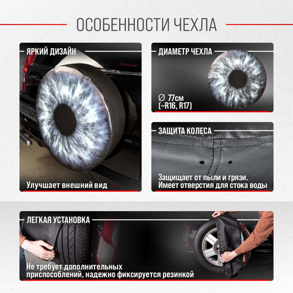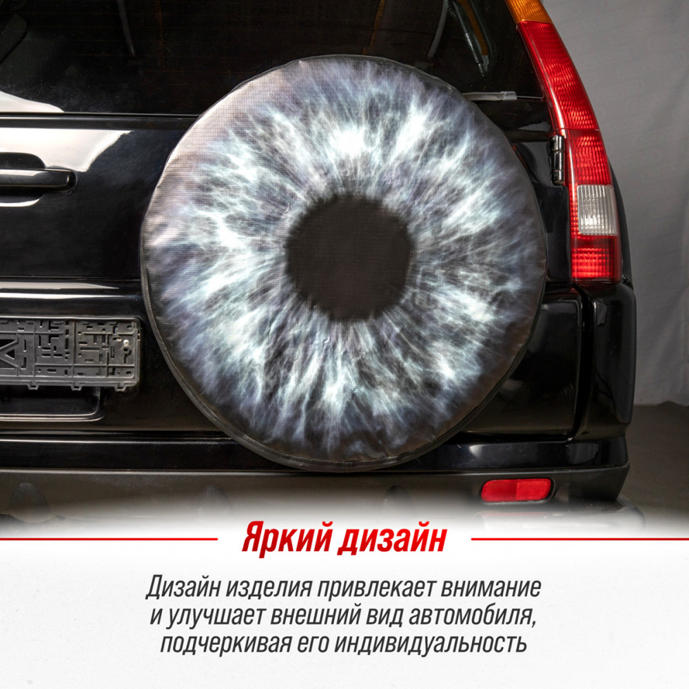 Чехол на запасное колесо автомобиля из прочного и легко моющегося материала. Экокожа и полиэстер сохраняют свою форму, устойчивы к воздействиям окружающей среды. Чехол защищает запасное колесо от проникновения пыли, возможных загрязнений, солнечных лучей и агрессивных веществ. Яркий дизайн изделия привлекает внимание. Аксессуар улучшает внешний вид автомобиля, делает его более интересным и лаконичным. Подходит для городских и полевых условий. Чехол с легкостью надевается на колесо, не требуя дополнительных приспособлений.