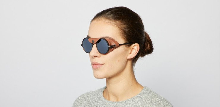 SUN GLACIER — стильная модель, которая может трансформироваться благодаря дополнительным элементам. Очки подходят и для гор, и для городской жизни. Все элементы кожаной защиты легко снимаются с оправы.