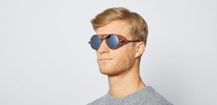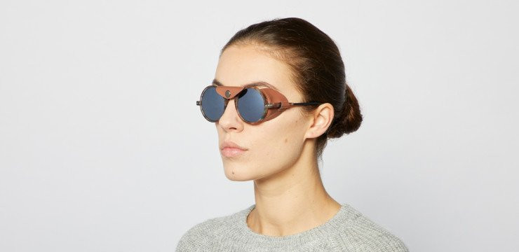 SUN GLACIER — стильная модель, которая может трансформироваться благодаря дополнительным элементам. Очки подходят и для гор, и для городской жизни. Все элементы кожаной защиты легко снимаются с оправы.