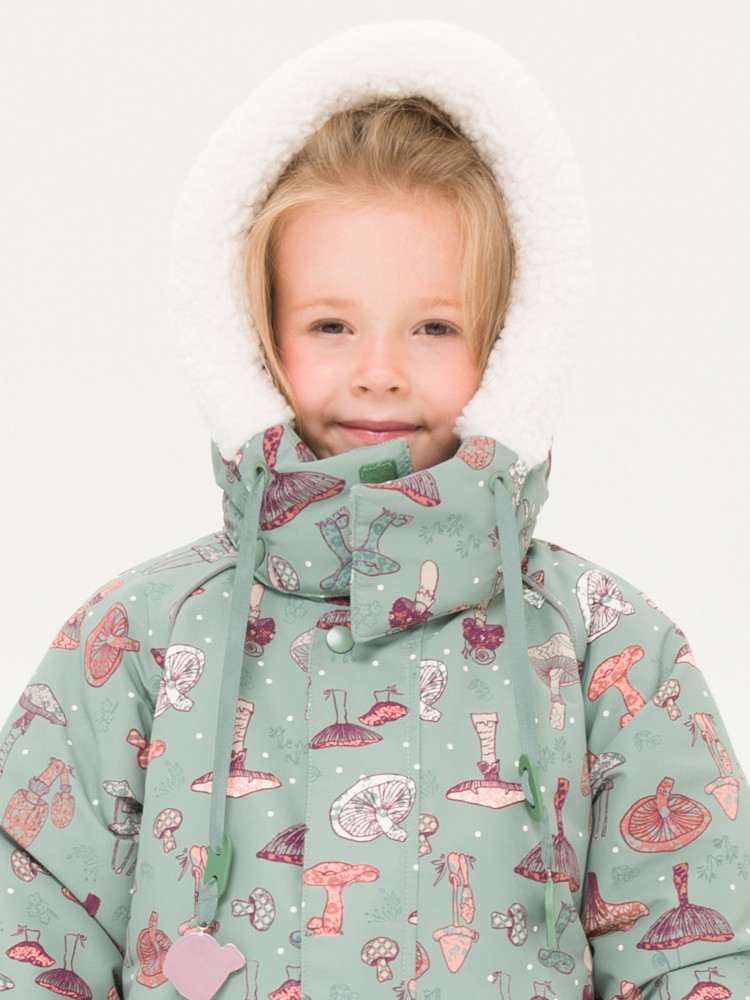 Фишка модели — лейбл внутри изделия, на котором ребенок может сам написать свое имя. Подклад флис. Современный утеплитель повышенной теплоизоляции лучше сохраняет тепло тела, не нарушая собственный теплообмен. Стильный свободный комбинезон для девочек идеально выдержит температурный режим до −25°С.