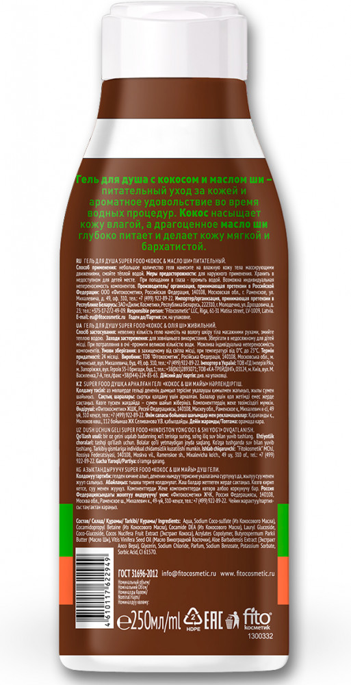 Фитокосметик Гель для душа «Кокос и масло ши»