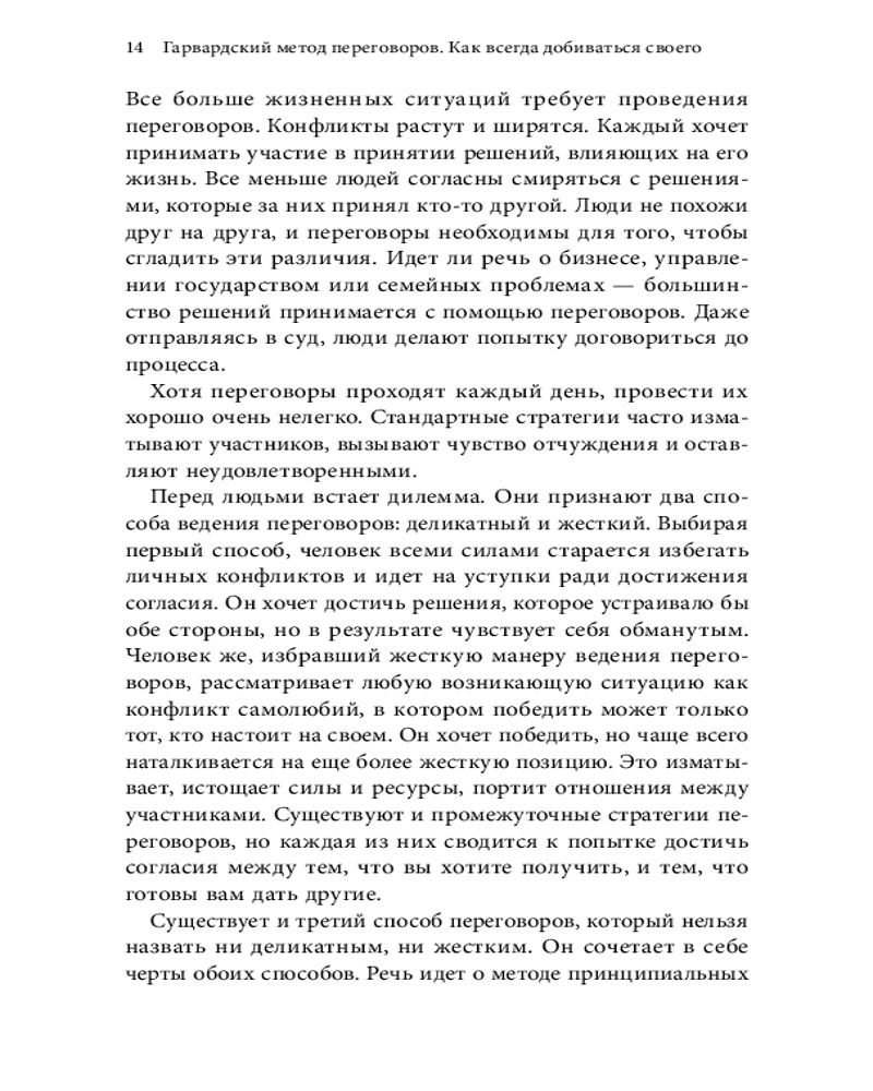 Любой метод переговоров можно оценить по трем критериям. Переговоры должны привести к разумному соглашению, если таковое возможно. Переговоры должны быть эффективными. И наконец, они должны улучшить, но уж ни в коем случае не испортить отношения между сторонами.