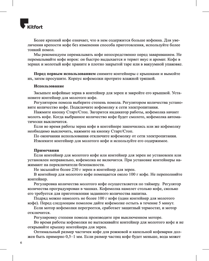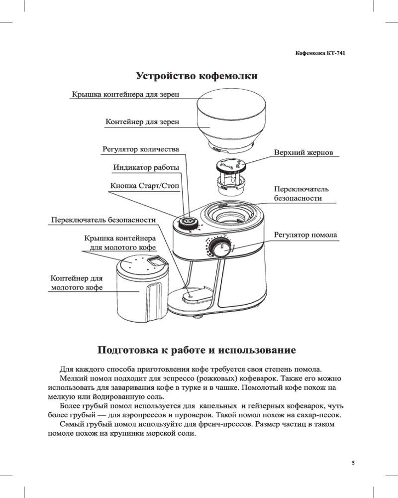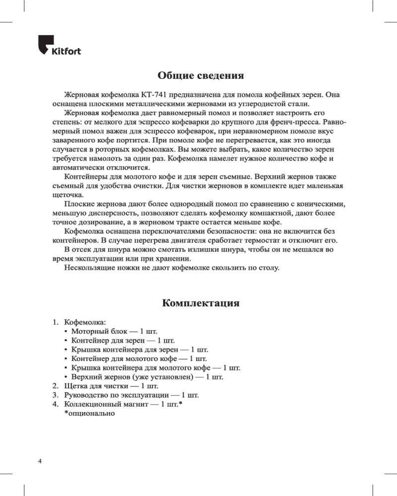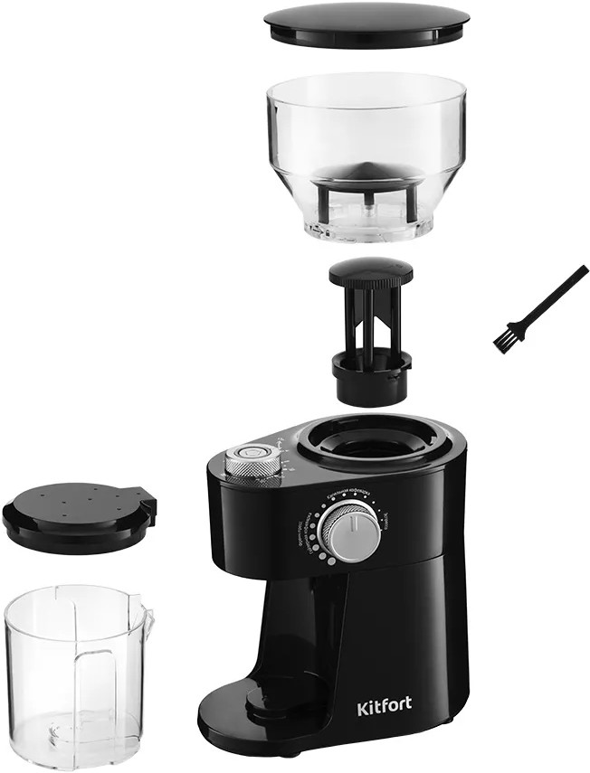 Жерновая кофемолка Kitfort КТ-741 предназначена для помола кофейных зёрен. Она оснащена плоскими металлическими жерновами из углеродистой стали. Благодаря чему, при помоле, кофе не перегревается и не меняет свой вкус.