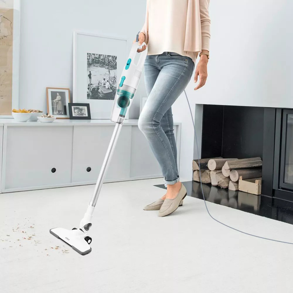 Вертикальный пылесос Kitfort КТ-586 удобен для уборки различных поверхностей: линолеум, паркет, ламинат, ковёр, ковровые покрытия, плитка, мрамор и т.д. Он компактный и лёгкий. Шнур длиной 5 м позволяет убирать на большом расстоянии от розеток.