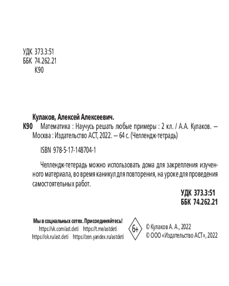 | Математика. Научусь решать любые примеры. 2 класс Алексей Алексеевич Кулаков +8 (бонусов)