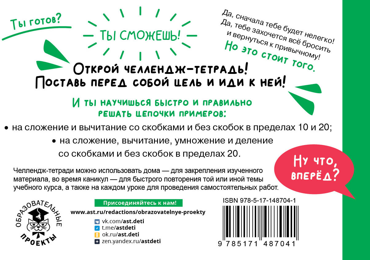 Задания в челлендж-тетради небольшие: 10-15 примеров на 1 занятие. Каждое занятие проверяет и оценивает сначала сам ребёнок (смайлики), затем взрослый: учитель, педагог или родитель.