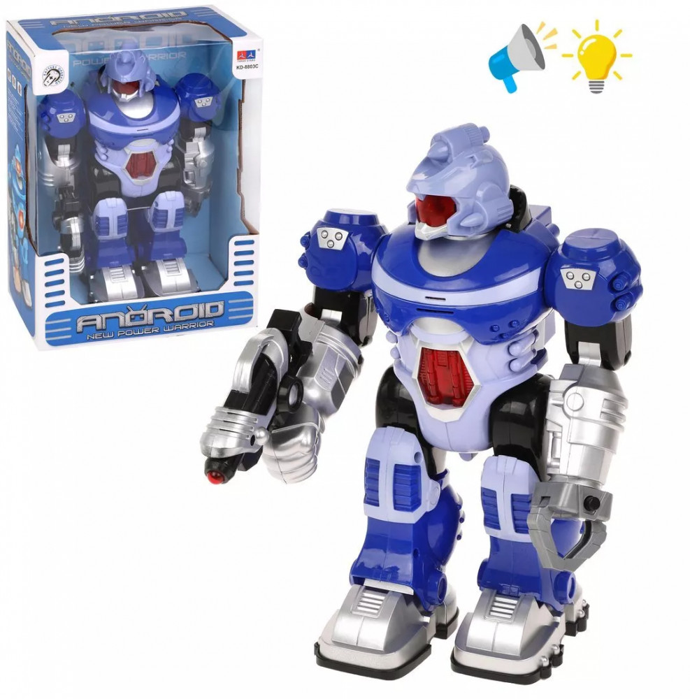 Наша игрушка РоботВ данный момент этот товар отсутствует в продаже. Возможно, у нас найдется аналогичный или похожий товар здесь. Робот со светозвуковыми эффектами. Включается/выключается при помощи переключателя On/Off, расположенной с обратной стороны изделия. Игрушка умеет шагать по направлению «вперёд», двигать руками и головой, а также робот призывает к бою и воспроизводить звуки стрельбы. Во время игры робот подсвечивается в области глаз и живота. Робот в детально проработанной броне и шлеме выглядит просто фантастично и будет отличным подарком для любого мальчика. Игрушка обязательно порадует ребенка своими разнообразными игровыми функциями. Игрушка не русифицирована! |